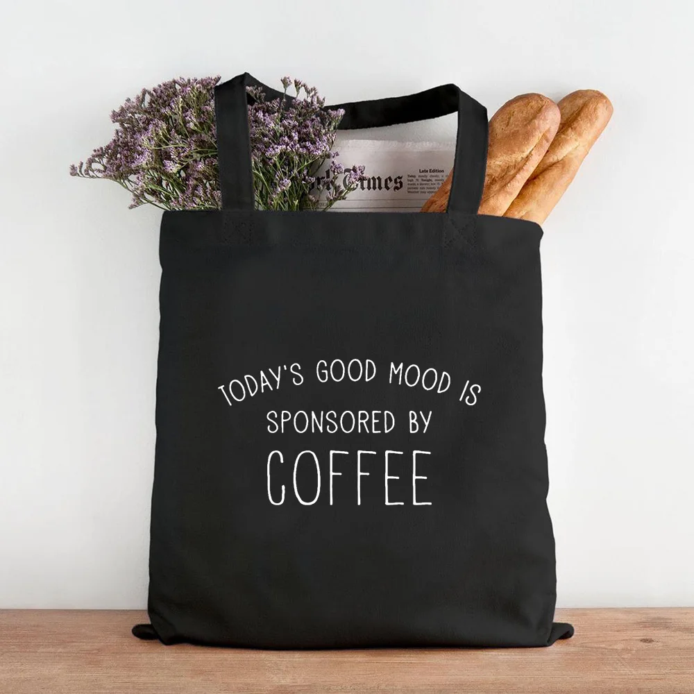Первый кофе Печать холст покупки черные сумки мама жизнь женщины Наплечная ткань сумки многоразовые шоппер учительницы книга сумки