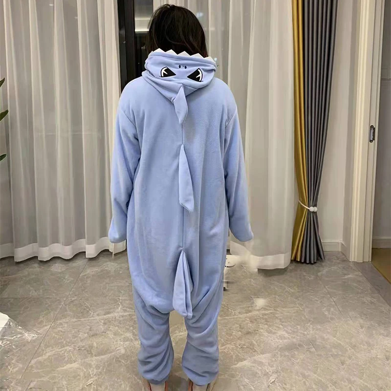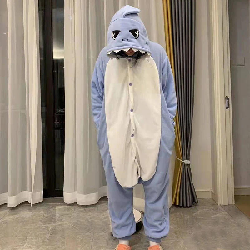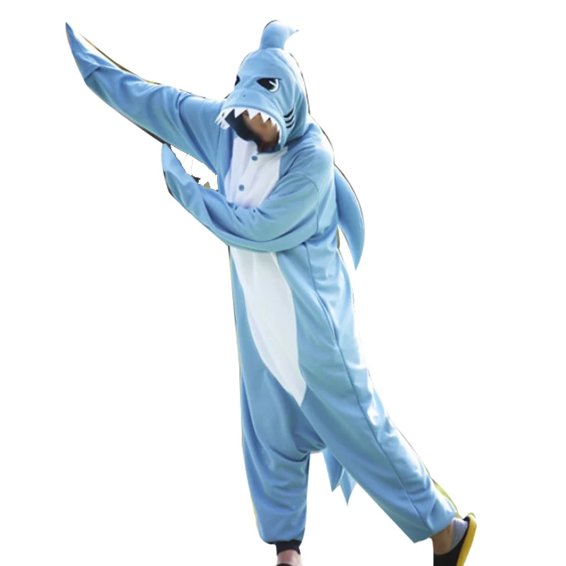 Женские пижамы с синими акулами, кигуруми, Мультяшные Комбинезоны для взрослых, мужские цельные пижамы, флисовый комбинезон, костюм для косплея на Хэллоуин