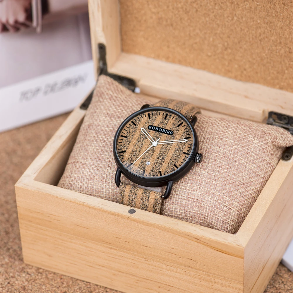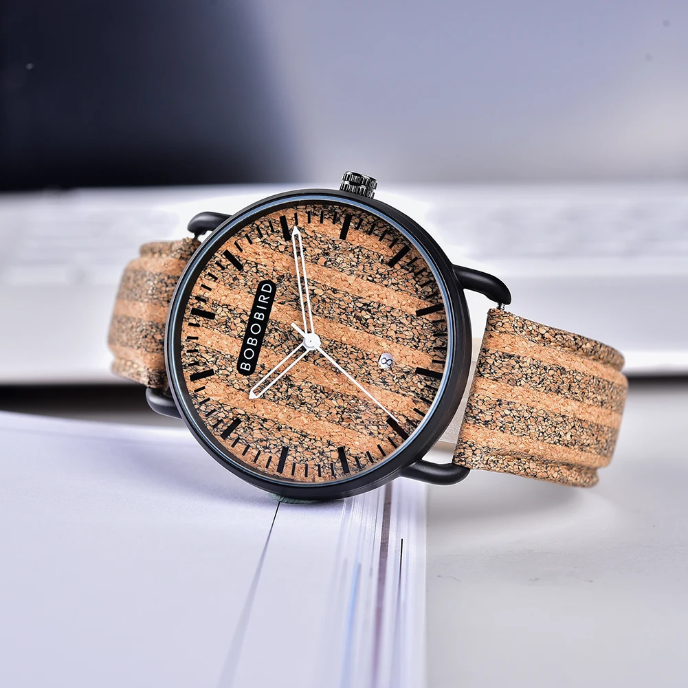Мужские наручные часы BOBO BIRD, деревянные, водонепроницаемые, в японском стиле, модная пробка кожа