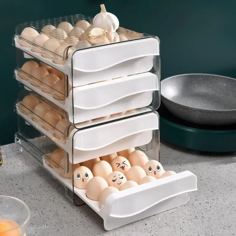 3,60 сетки большой емкости, Двухслойный дизайн, каждый слой может хранить 30 яиц, свободное хранение, экономия пространства. Лоток для яиц закреплен, и паз спроектирован. Каждое яйцо помещается отдельно, чтобы предотвратить тряску и эффективно предотвратить столкновение и поломку яйца.