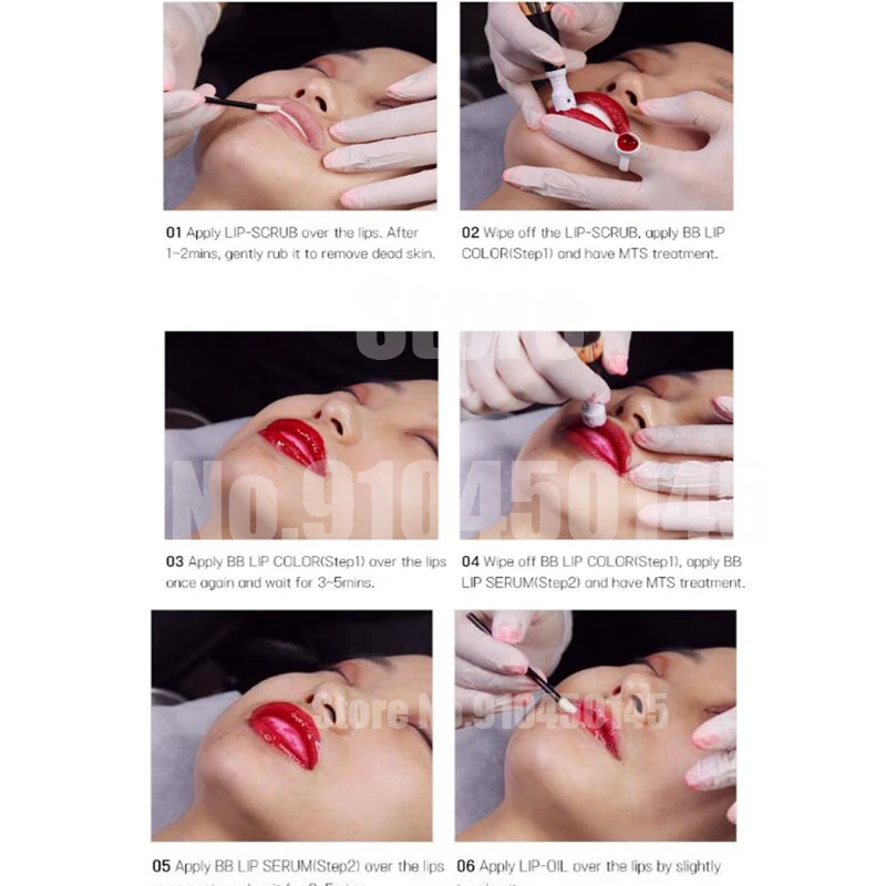 Чтобы сохранить цвет и продлить срок, 1. Нанесите восстанавливающий крем два раза в день (утром и ночью) в течение 3-5 дней S2) последовательно наносите оттенок губ 2. Продолжительность сеанса: в среднем две недели (зависит от типа кожи и после ухода) * Лучший рекомендуемый цикл лечения, чтобы сохранить цвета чистыми и длинными 3. Всего 3 ~ 4 сеанса (1 ~ 2 недели интервала между каждой сессией) 4. Интервал должен определяться в отношении состояния губ клиента Внимание: 1. Отшелушивание перед началом процедуры может повысить результат процедуры. Перед началом процедуры удалите омертвевшую кожу. 2. После ухода также очень важно получить лучший результат. Увлажните губы после проведения процедуры. 3. Продолжительность и цвет могут отличаться от каждого типа кожи. 4. Цвет может исчезнуть быстрее, чем ожидалось, если он первый раз. В этом чехол, наблюдайте за состоянием губ в течение 1 -2 недель и совершите дополнительную процедуру. 5. Не позволяйте пигменту и сыворотке касаться кожи, кроме губ. Очень трудно стереть из-за сильной силы окрашивания. 6. Чтобы предотвратить это, нанесите очищающий гель вокруг губ перед началом процедуры. 7. Продолжительность цвета может зависеть от личных привычек жизни и диеты.