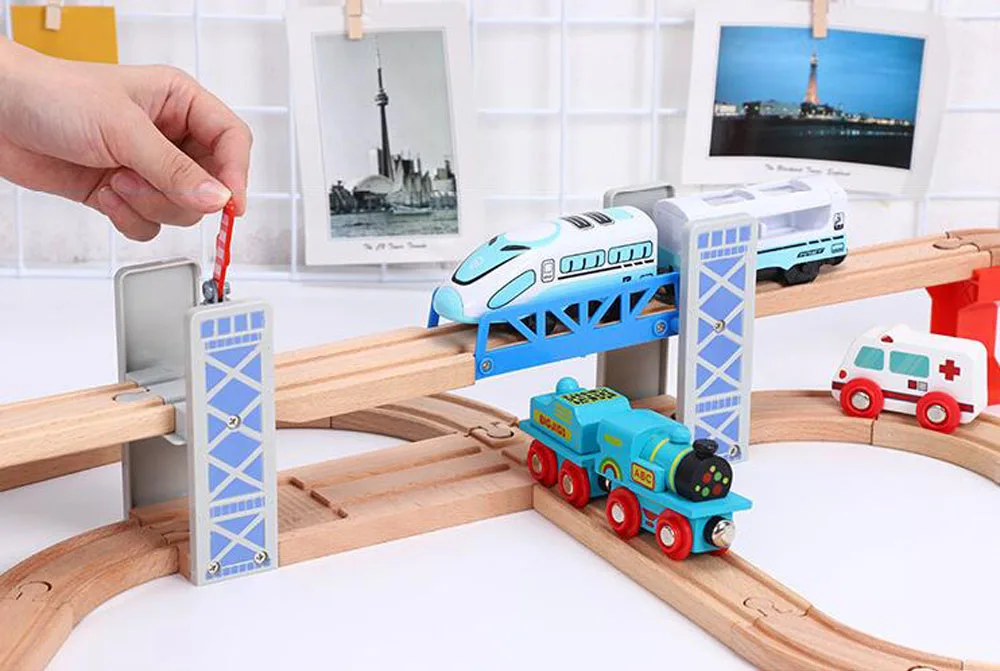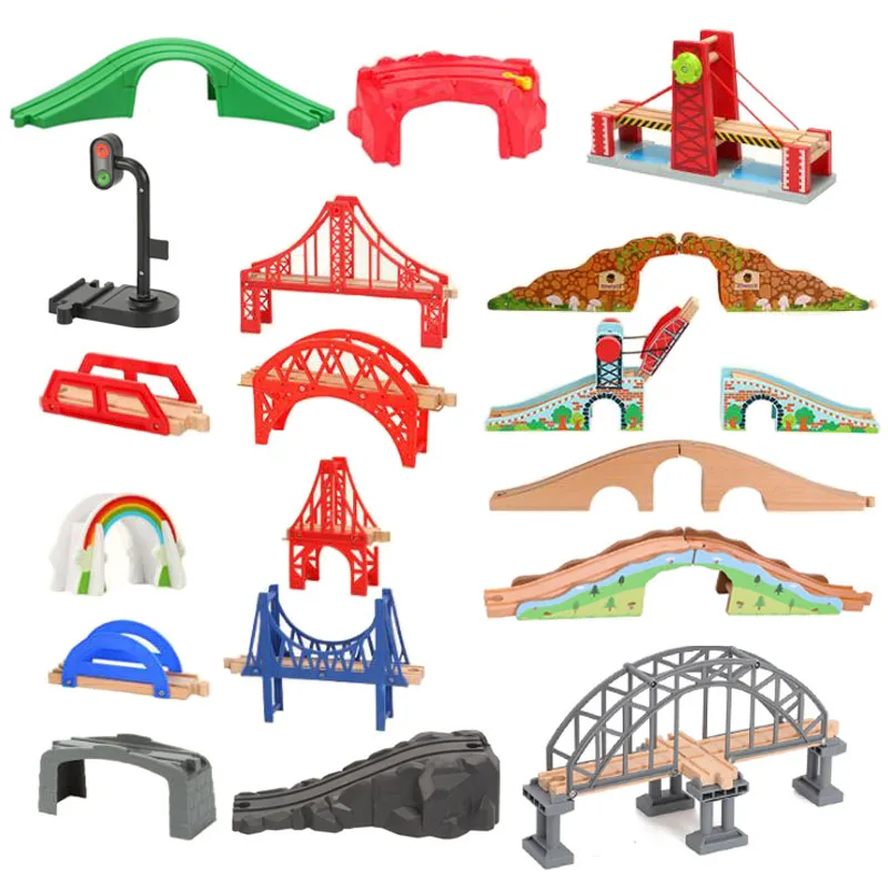 Детали для деревянного трека, мост, деревянная железная дорога, гоночные треки, аксессуары, обучающие игрушки для детей, подарок