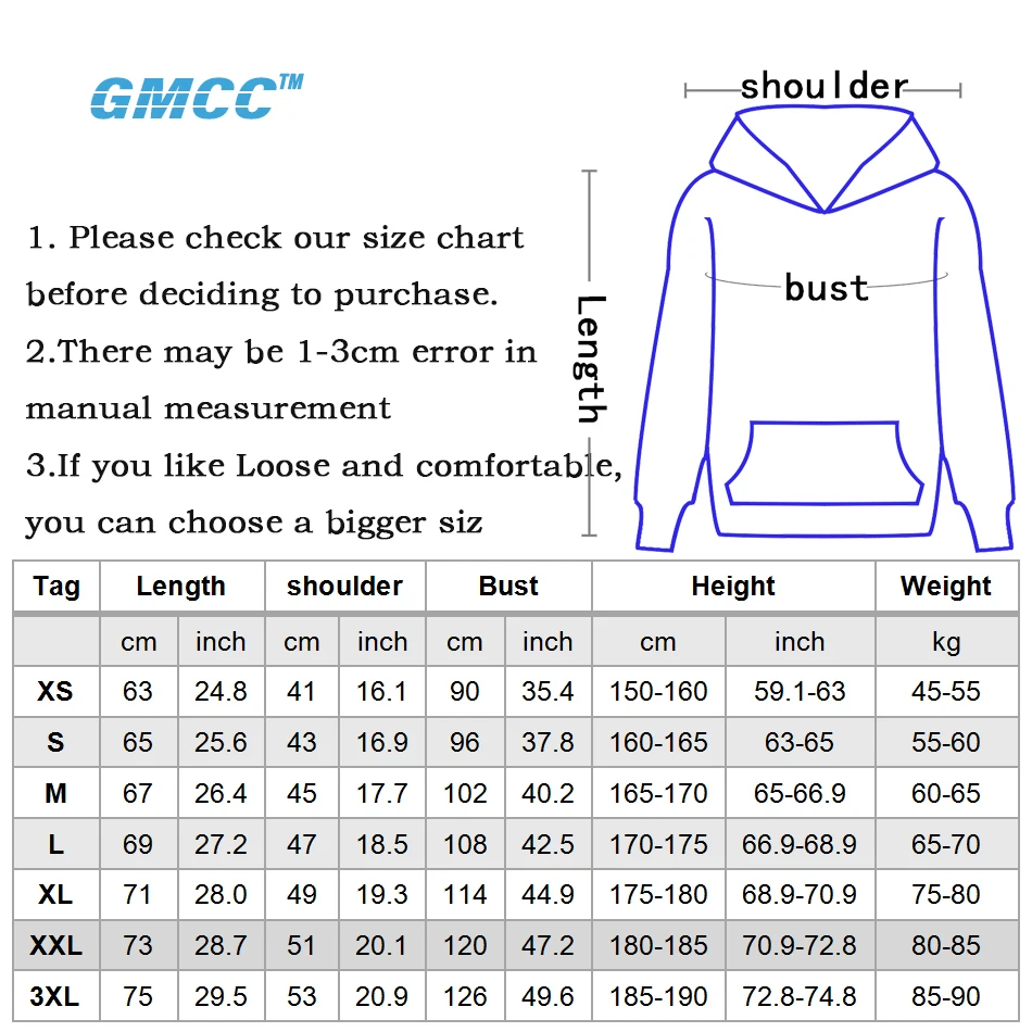 1. Перед покупкой проверьте нашу таблицу размеров.2. Возможны отклонения в 1-3 см при измерении вручную3. Все наши товары являются азиатскими размерами4. Если вам нравится свободная и удобная, вы можете выбрать больший размер5. Если вы не уверены в размере (см. Отзывы покупателей)6. Наша Таблица размеров содержит рекомендации по росту и весу. Вы можете ознакомиться с нашей таблицей размеров7. Вы купили его с капюшоном8. Из-за разницы между компьютерными мониторами, огнями, фотографическим оборудованием и т. д. каждая партия продуктов будет немного отличаться, пожалуйста, обратитесь к фактическому товару, который вы получили.