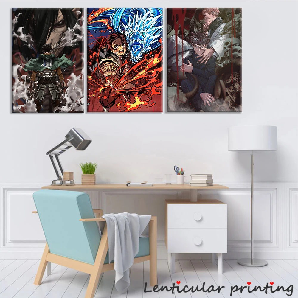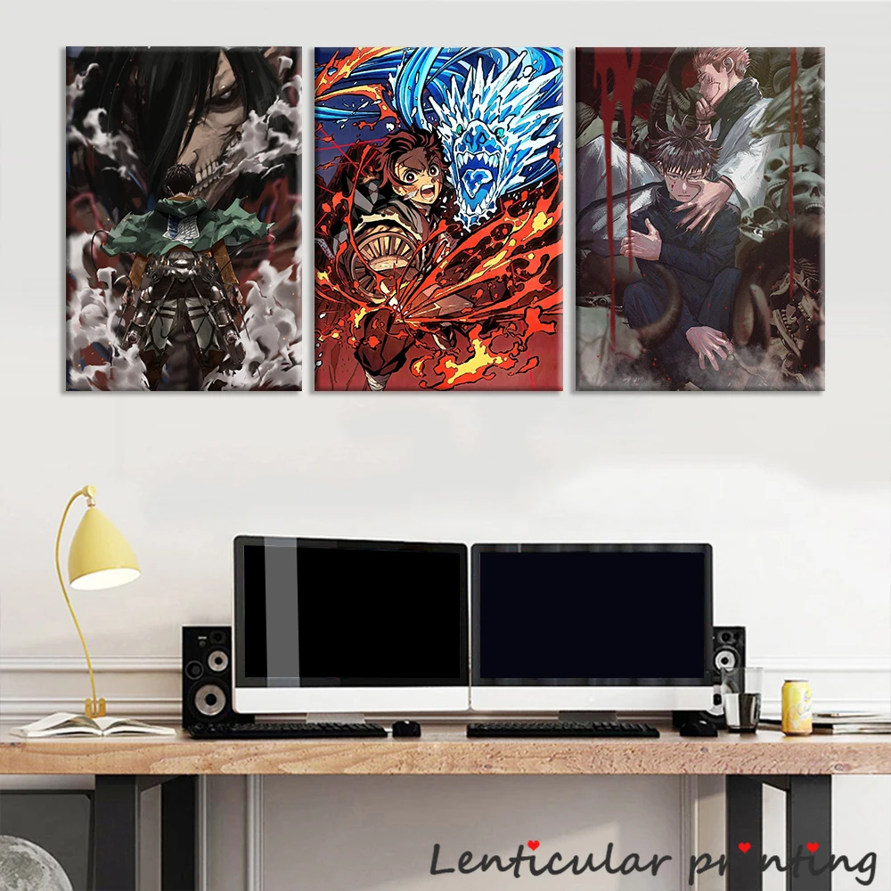 3 Аниме Атака Титановюдзюцу кайзенDemon Slayer плакат манга персонаж Эрен годжо танджиро холст настенная живопись декор комнаты