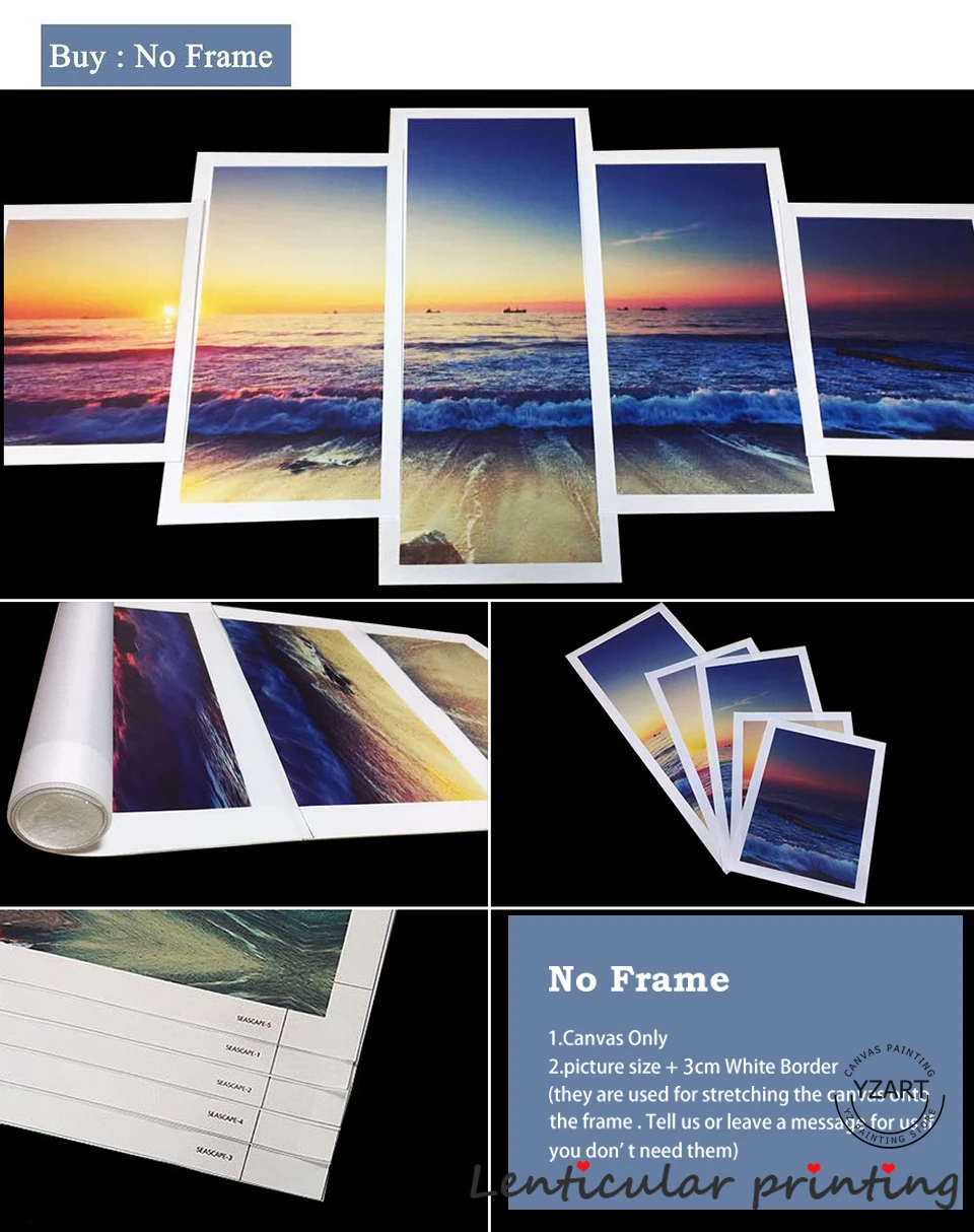 1. Мы предоставляем услуги печати на заказ. Мы поможем вам разделить картину, чтобы разместить 5 панелей на холсте.