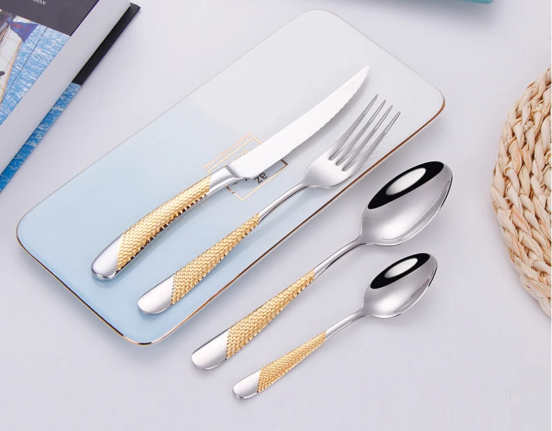 Набор кухонных столовых приборов, Золотая ложка, набор столовых приборов из нержавеющей стали