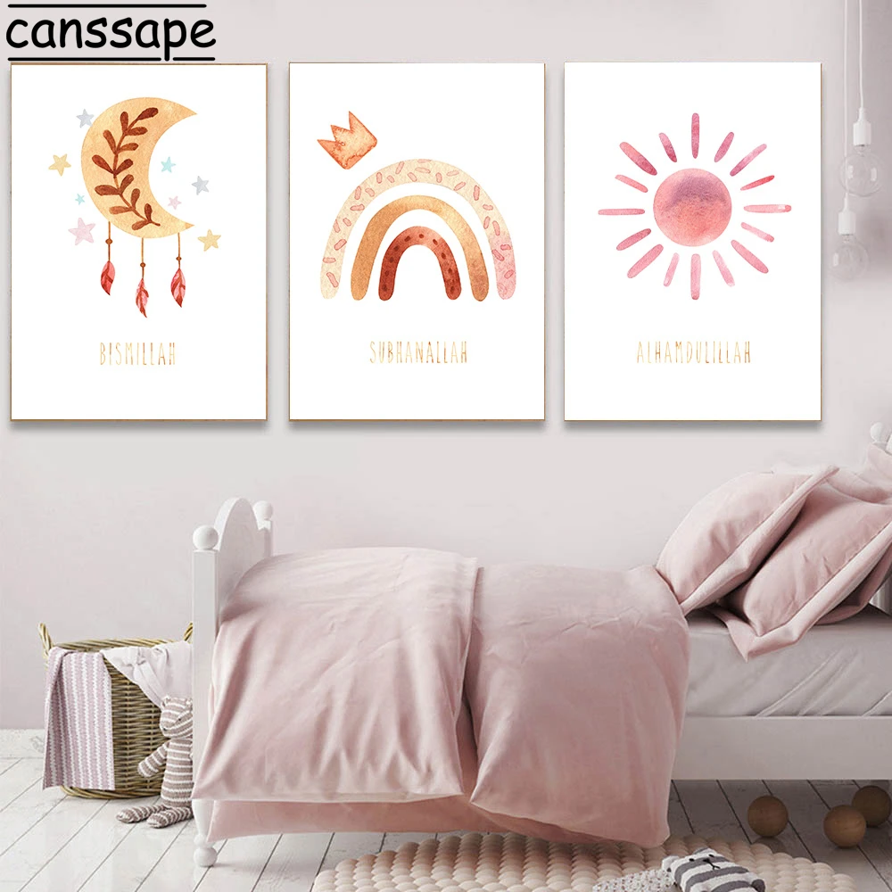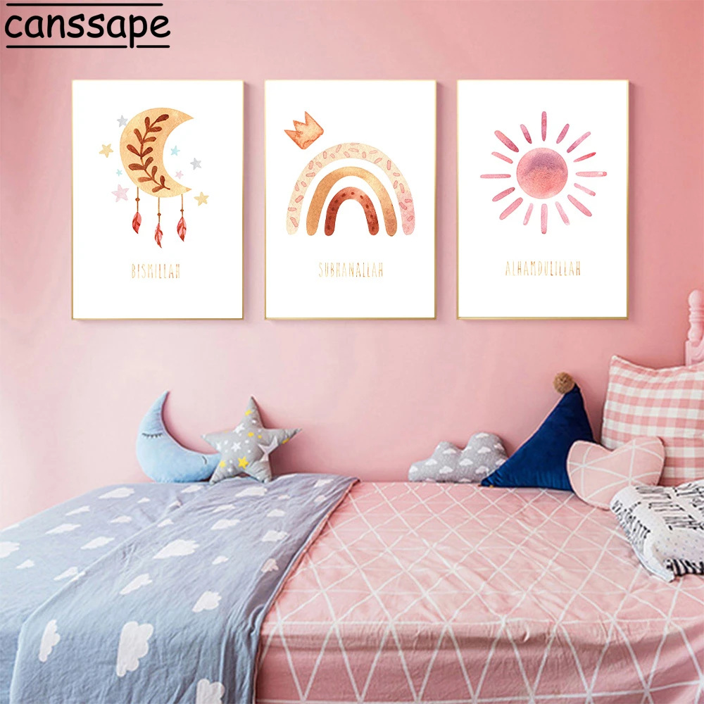 Настенная картина для детской комнаты, Картина на холсте со звездами, луной, солнцем, плакат с короной, постеры, настенные картины в скандинавском стиле, украшение детской комнаты