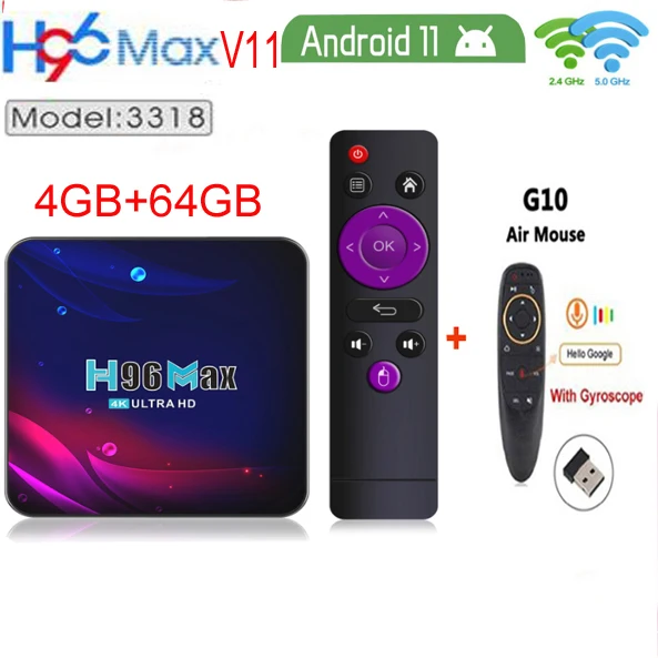 H96 Max V11 Android 11,0 TV Box RK3318, 4 ГБ, 64 ГБ, BT 4,0 Google Voice 4K Smart TV Box 2,4 г 5G Wi Fi Декодер каналов кабельного телевидения компьютерной приставки к телевизору