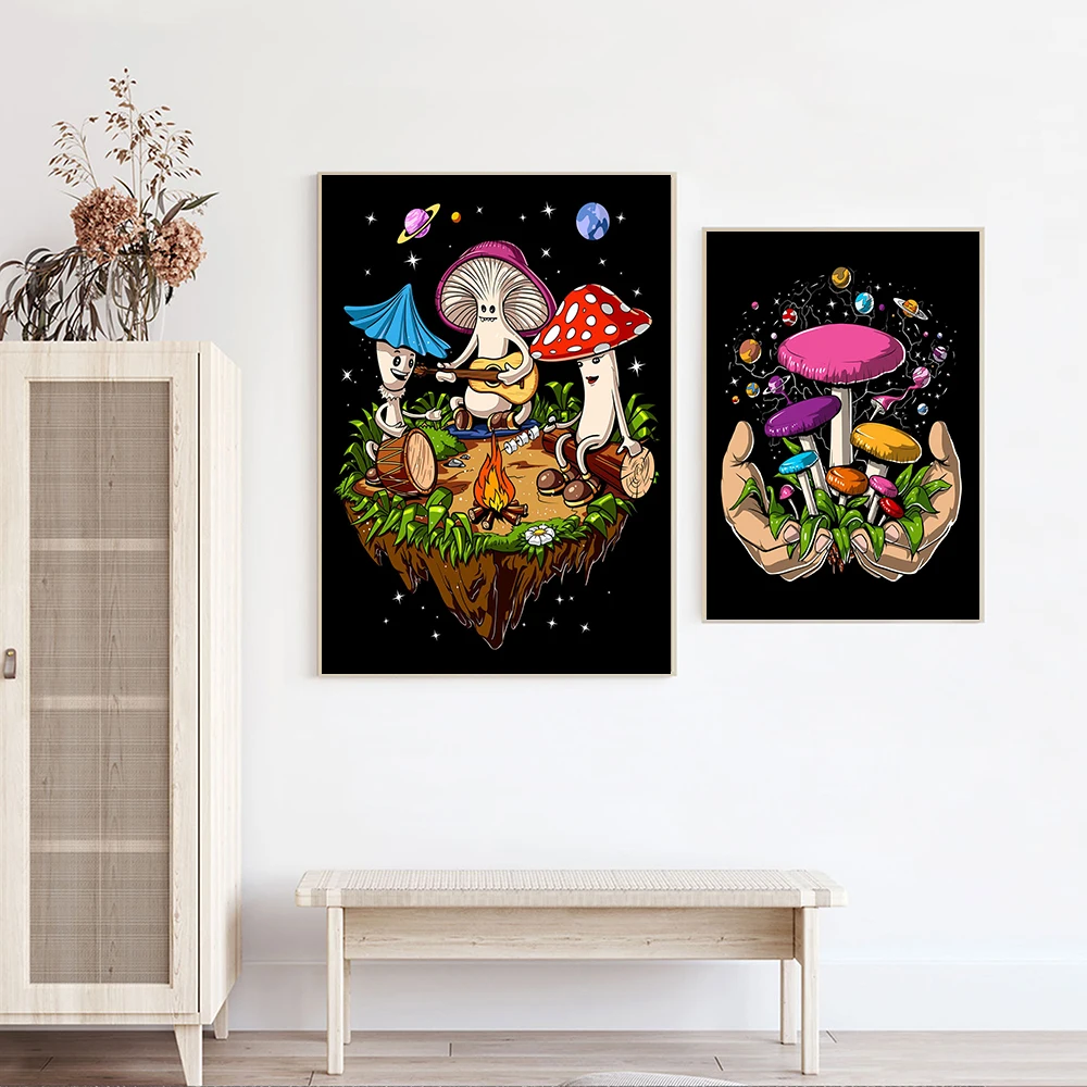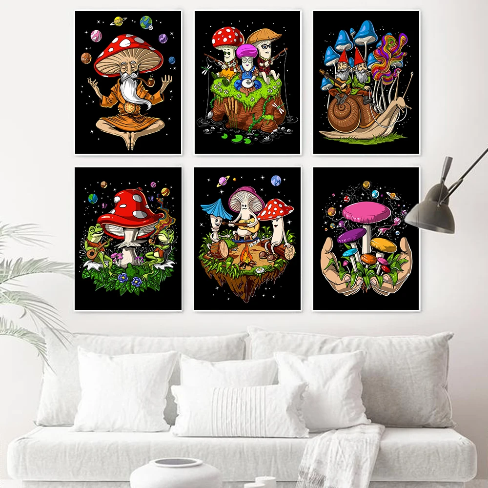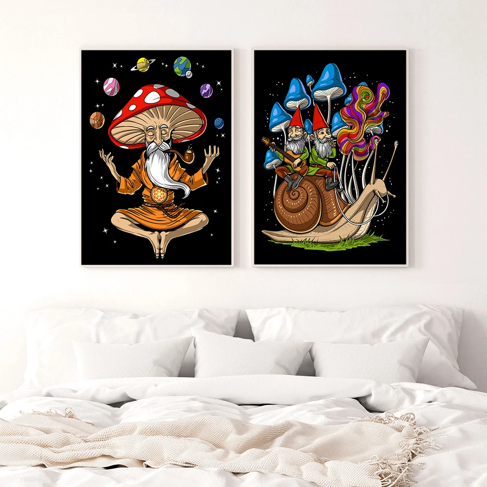 Волшебные грибы Будда настенная печать абстрактные картины Фэнтези лес жаба холст постеры психоделический хиппи гриб декор комнаты