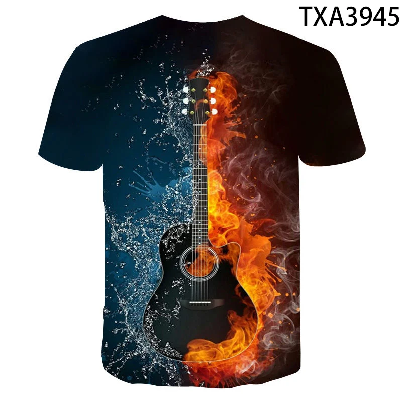 Футболка с 3D-принтом музыкальной гитары для мужчин и женщин, крутые топы с мультяшным принтом, крутая уличная одежда для мальчиков и девочек, детей, лето