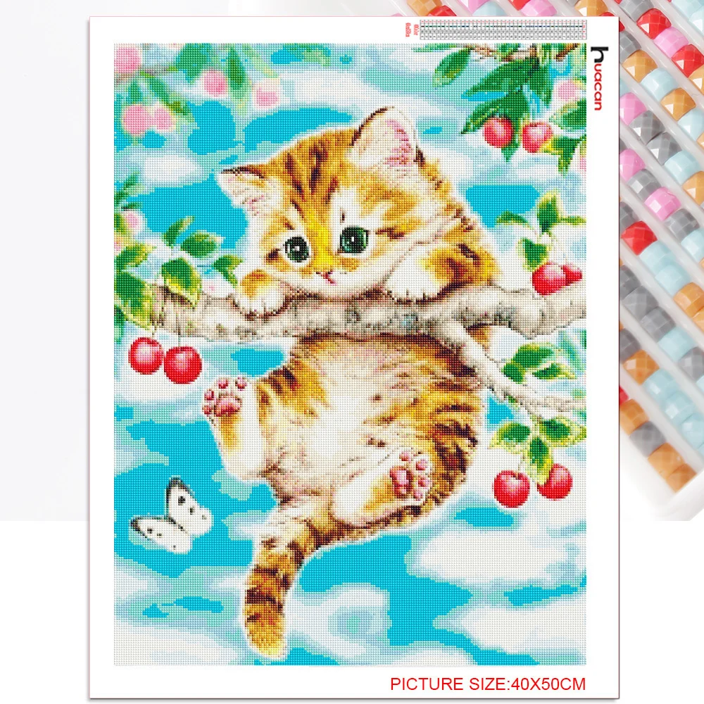 Алмазная живопись 5D сделай сам Huacan, полная квадратная мозаика, кошка, цветок, алмазная вышивка, полный набор животных настенные картины