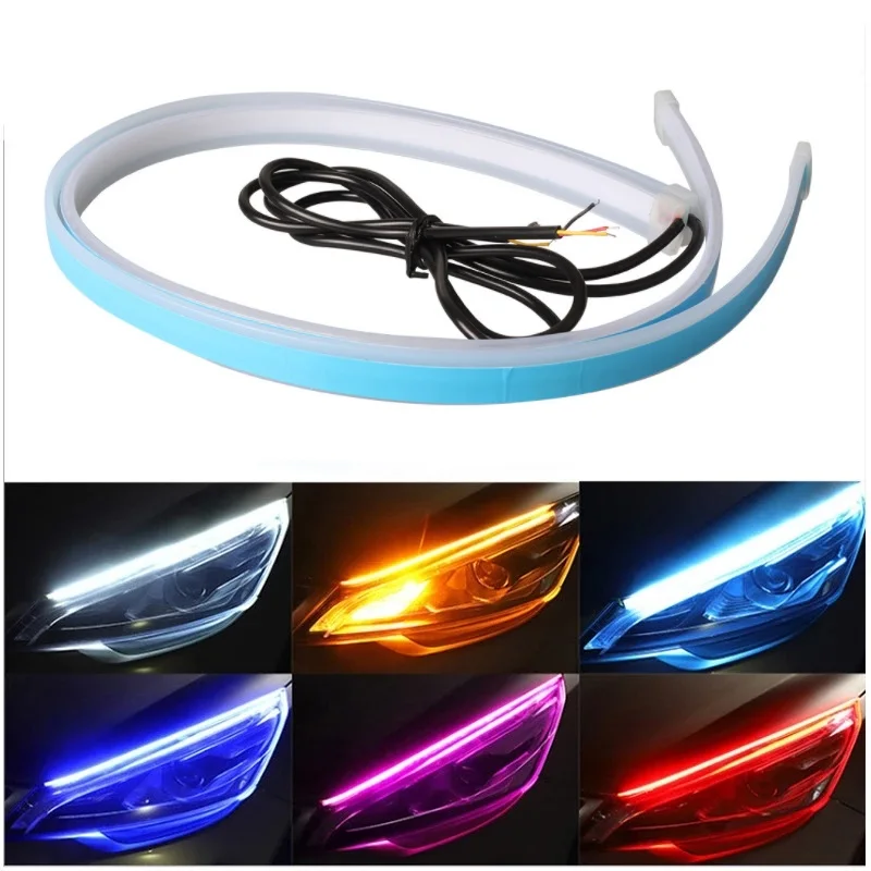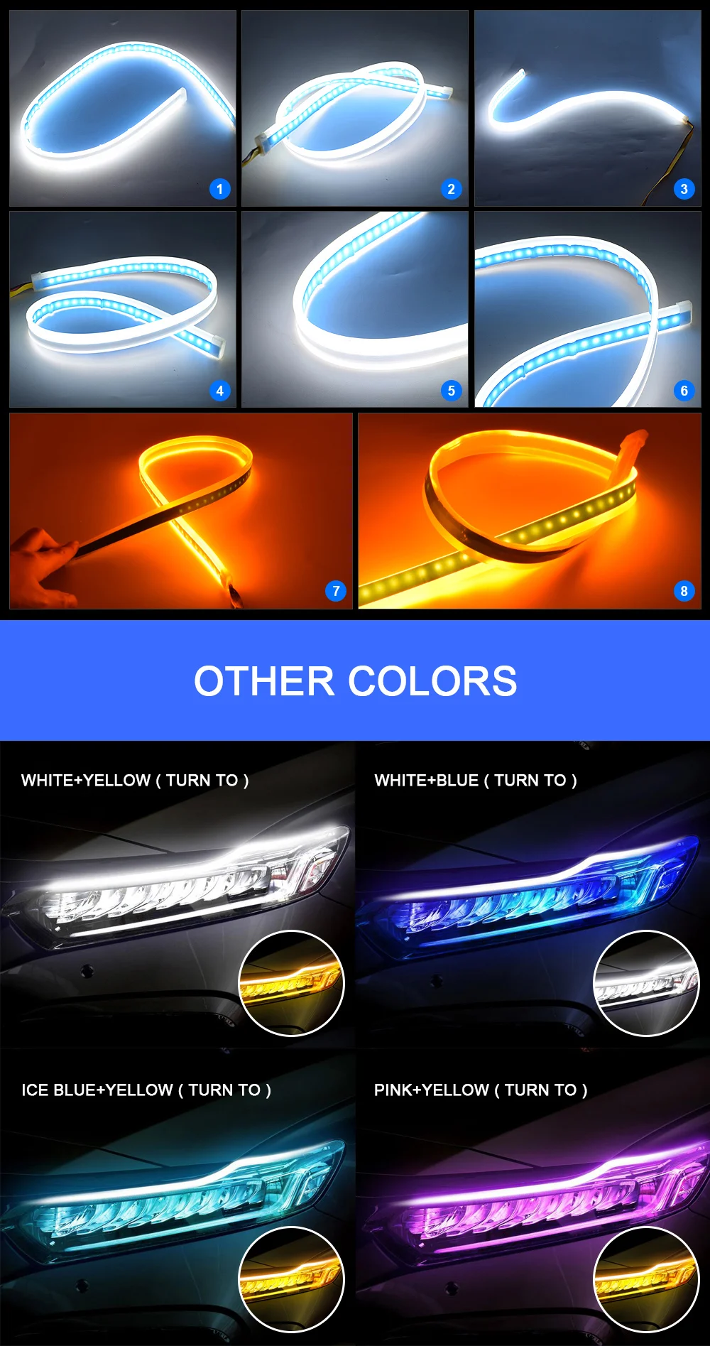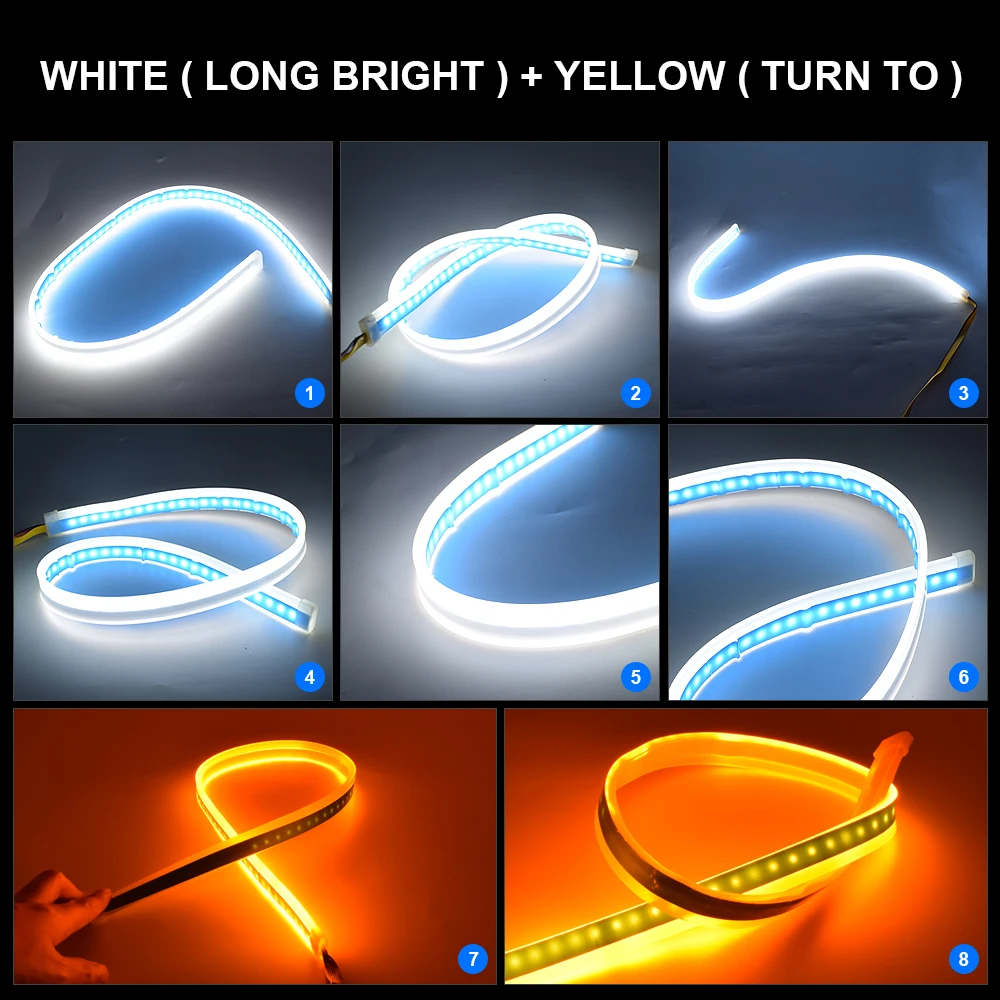 Светодиодсветодиодный дневные ходовые огни, 2 шт., дневные ходовые огни, гибкая Водонепроницаемая лента, автомобильные фары, белый сигнал поворота, желтый стоп-сигнал, 12 В