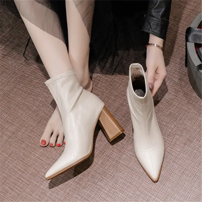 Белые короткие ботинки comemore, женские ботинки на толстом каблуке...
