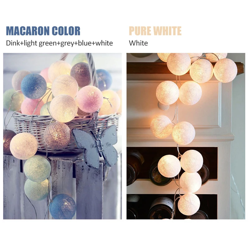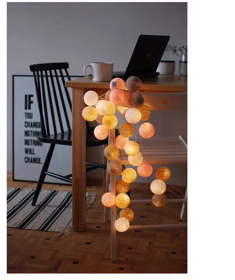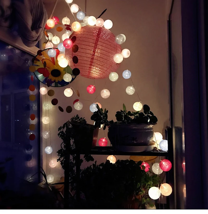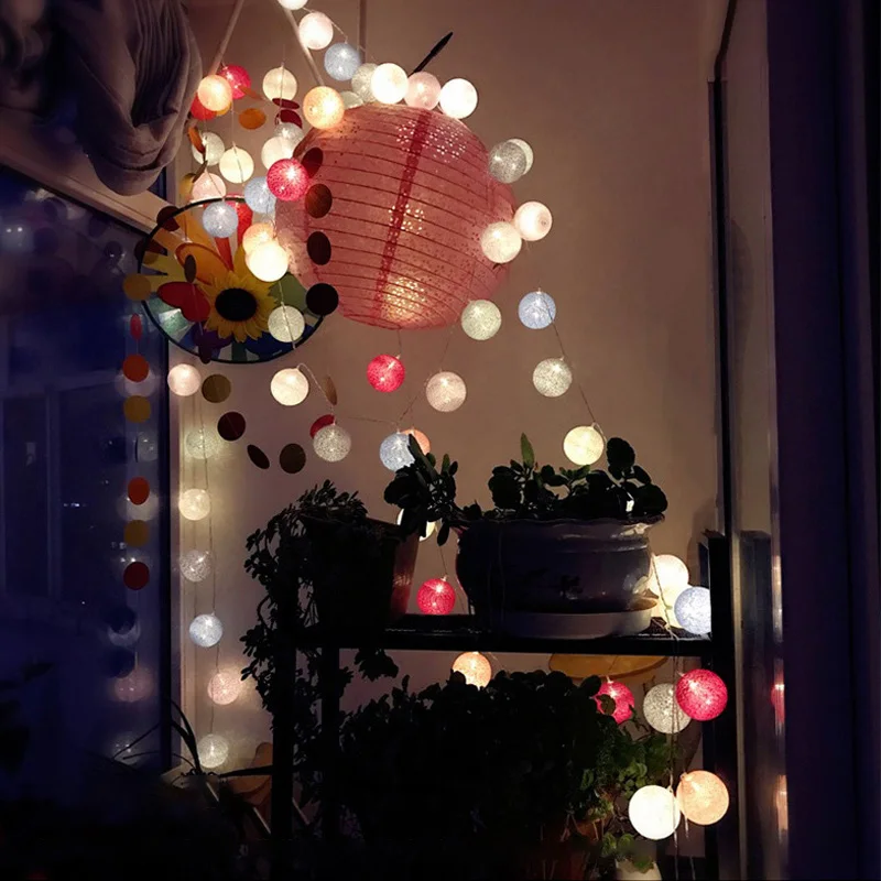 Рождественская яркая гирлянда с хлопковыми шариками, гирлянда, гирлянда для сада, спальни, свадьбы, уличная гирлянда на дерево, Сказочная гирлянда для детской кровати