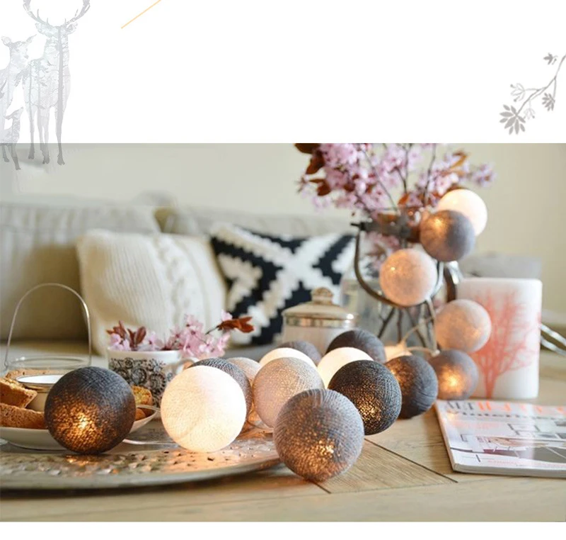 20 светодиодов, светильник в виде хлопковых шариков, Сказочная свет...