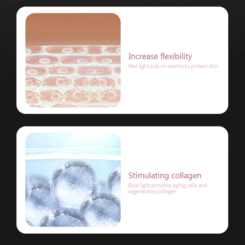 [2 режима фотона] 2 режима фотона: режим синий светильник используется для удаления акне, и режим Красный светильник используется для гладкой сморщенной кожи. Два светильника можно использовать вместе, чтобы обеспечить всесторонний уход за кожей.
