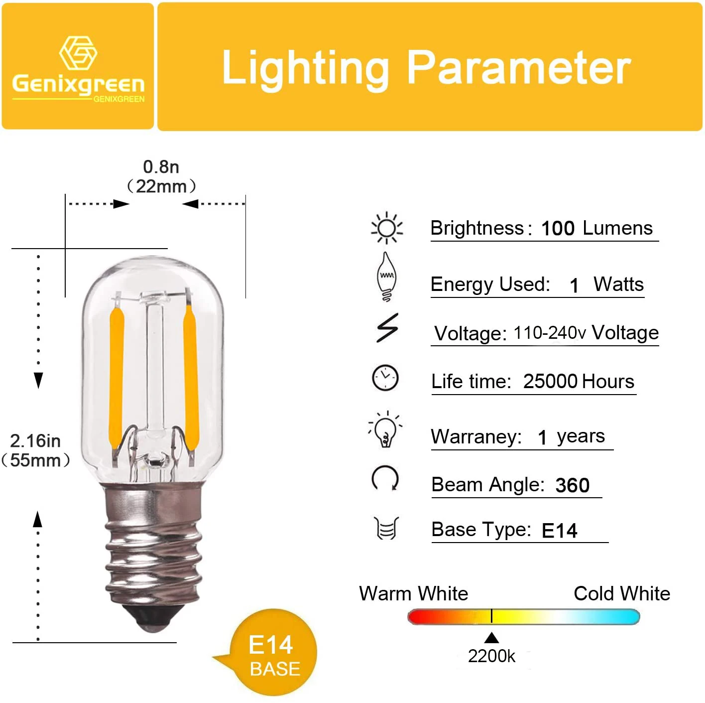 Приглушаемые трубчатые лампы T20 E12 E14, LED лампа накаливания Мини Ночная лампочка 1 Вт 2200K, Декоративное подвесное освещение для кухни и холодильника