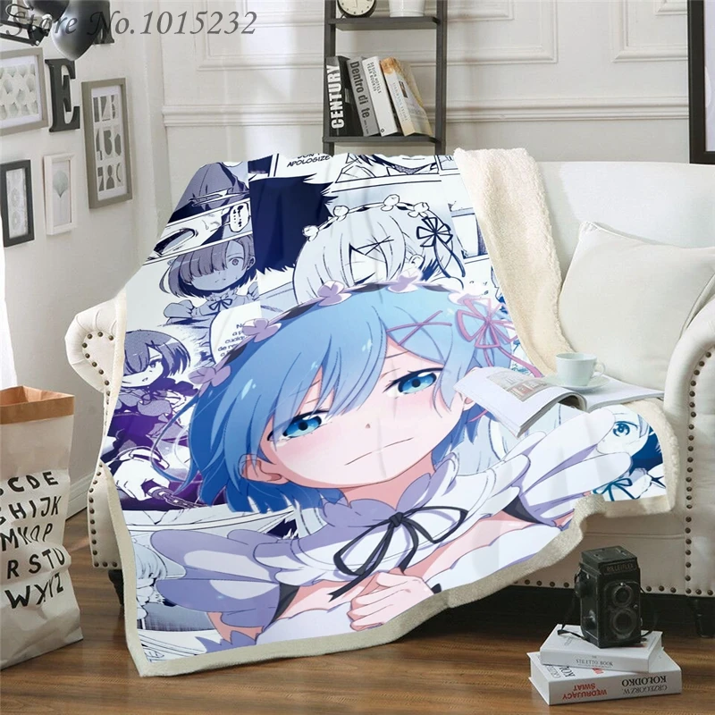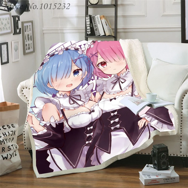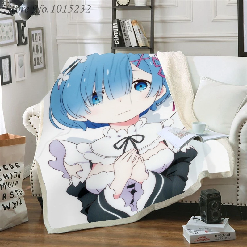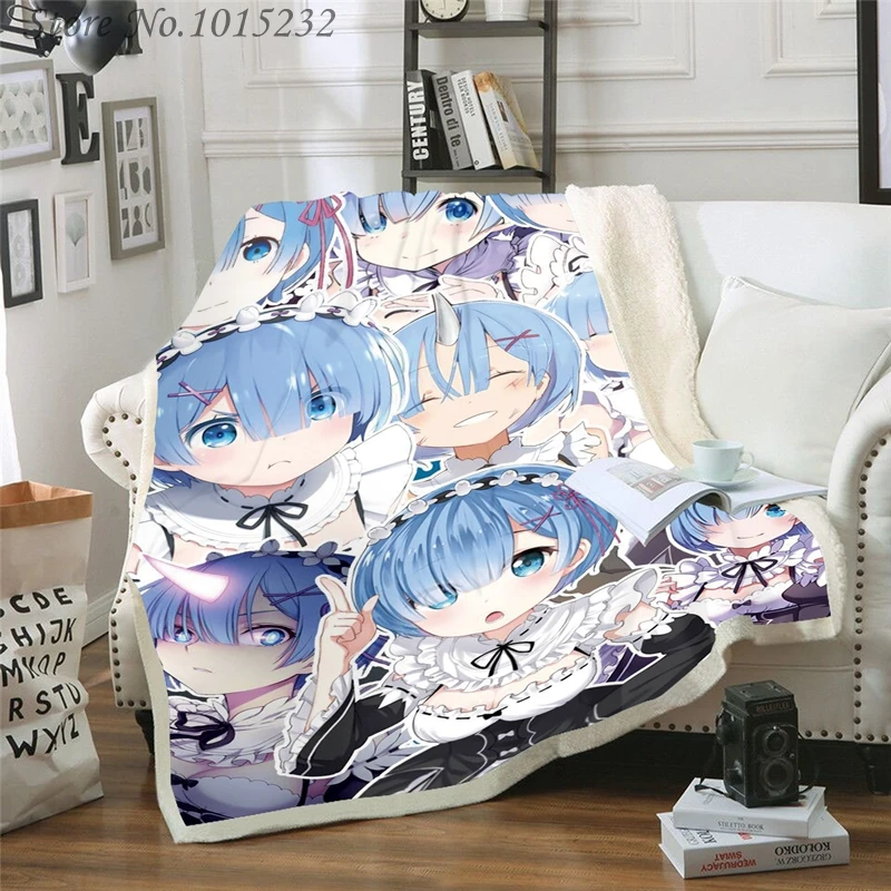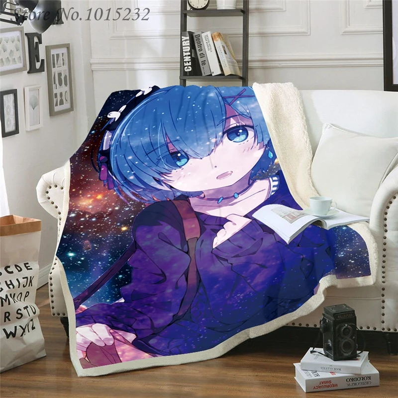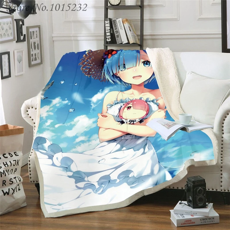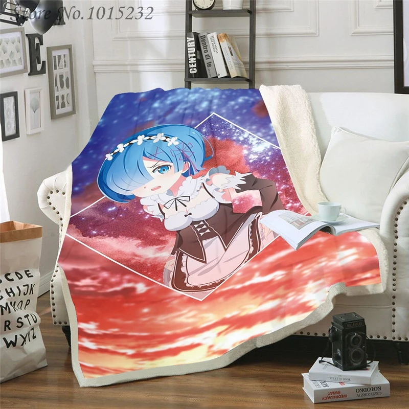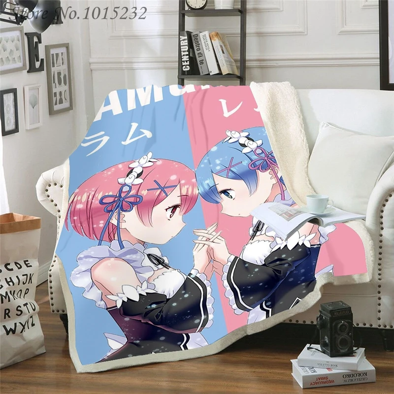 Одеяло с забавными персонажами из аниме Рем-Рам, одеяло из шерпы с 3D-принтом на кровать, домашний текстиль, сказочный стиль 04