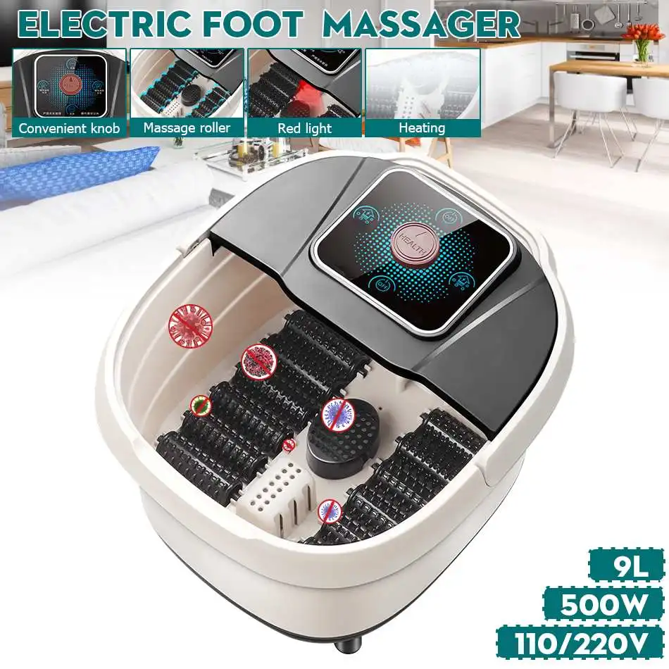 Складной массажер для ног, 500 Вт, с пузырьковым автоматическим нагревом, массажер для ног, массажные колеса, массажер для релаксации