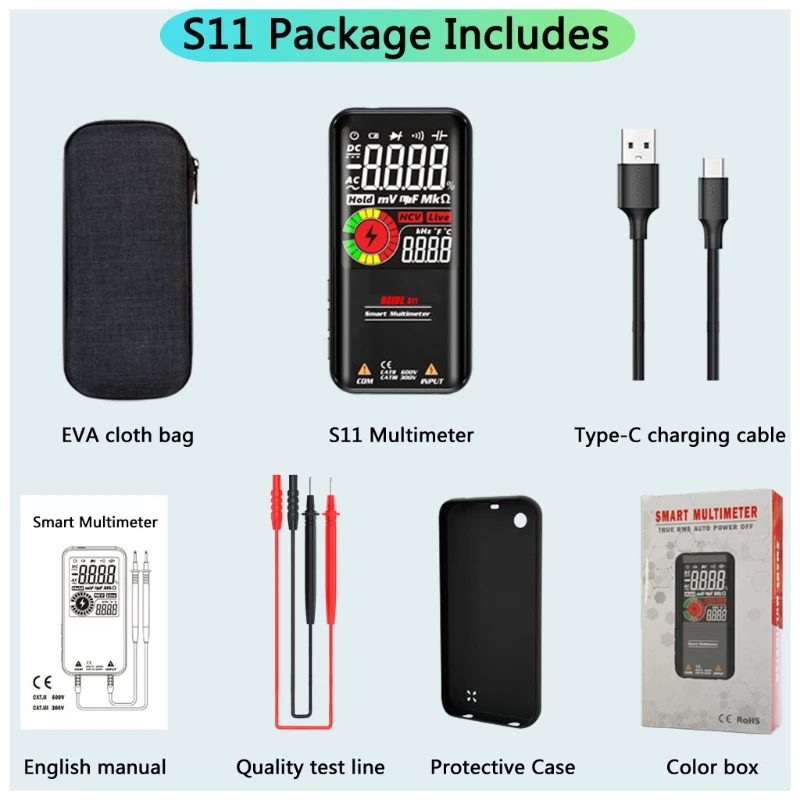 Цифровой смарт-мультиметр S10, S11, ЖК-дисплей, 9999, постоянный то...