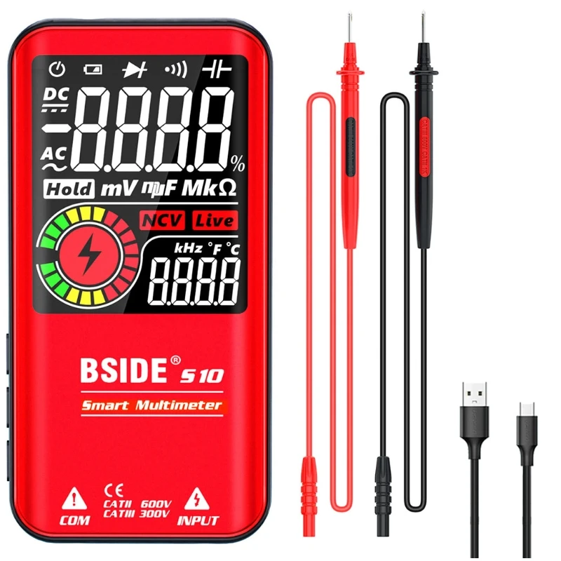 Цифровой мультиметр BSIDE S10 с цветным ЖК-дисплеем, 9999 отсчетов,...