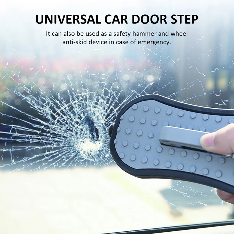 5. Многофункциональная и компактная складная лестница для транспортного средства: с складной, портативной конструкцией, шаг двери автомобиля может храниться в любом месте вашего автомобиля. Он также может быть использован как молоток безопасности и колеса анти-Нескользящие устройство в чехол возникновения чрезвычайной ситуации.