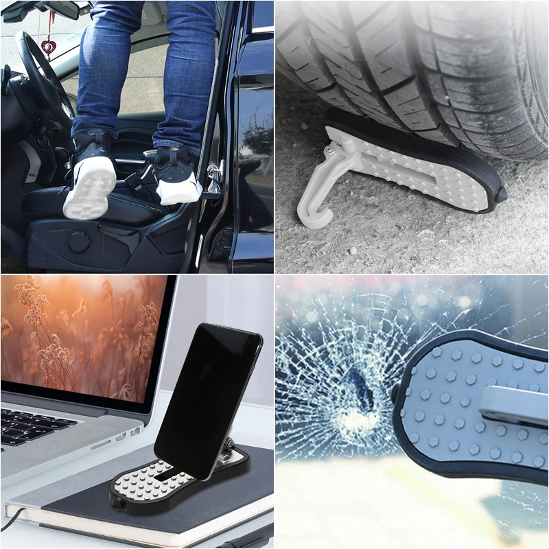 5. Многофункциональная и компактная складная лестница для транспортного средства: с складной, портативной конструкцией, шаг двери автомобиля может храниться в любом месте вашего автомобиля. Он также может быть использован как молоток безопасности и колеса анти-Нескользящие устройство в чехол возникновения чрезвычайной ситуации.