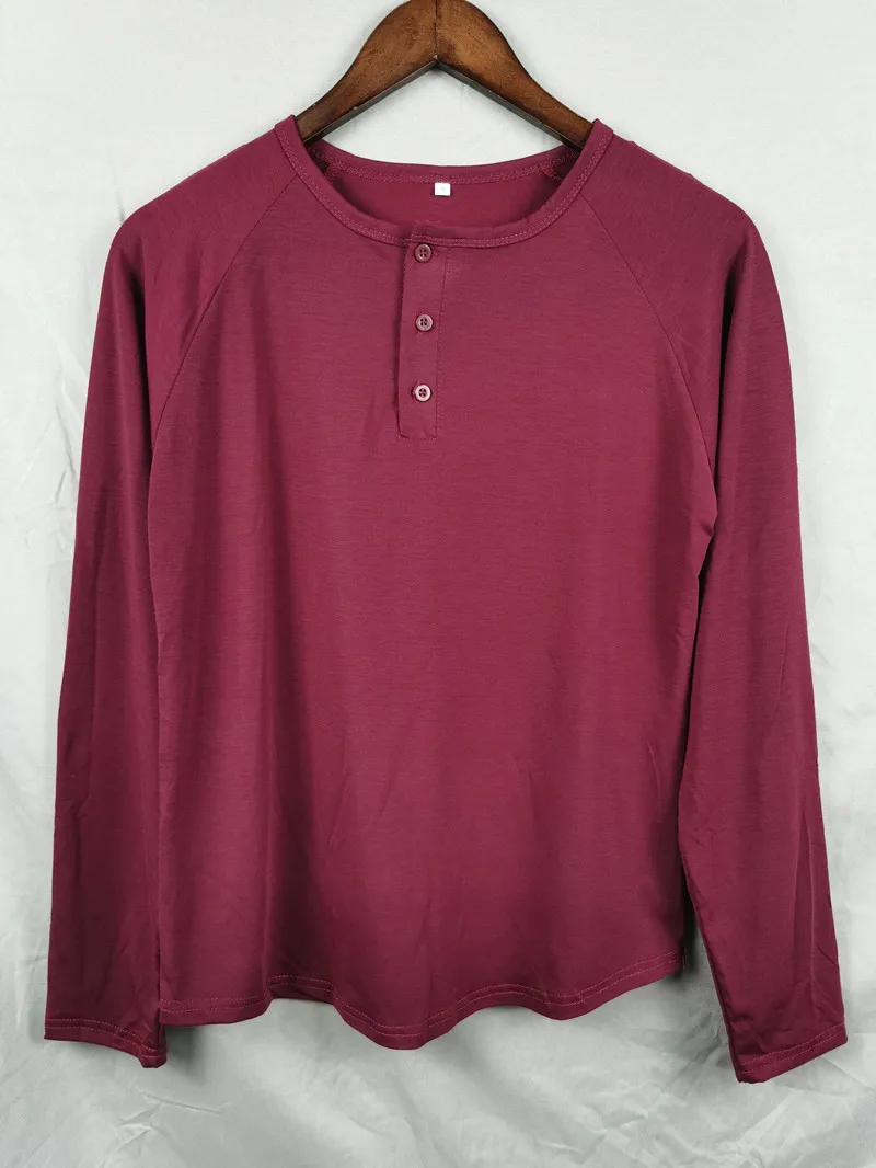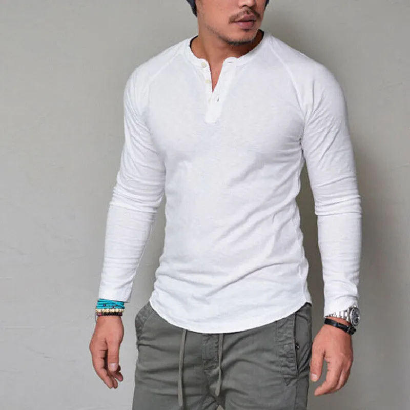 Футболка мужская Хенли с длинным рукавом, застежка на пуговицах, По...