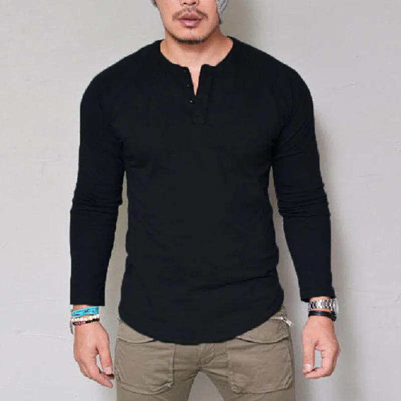 Модные мужские хлопковые тонкие фитнес v-образным вырезом кнопки бл...