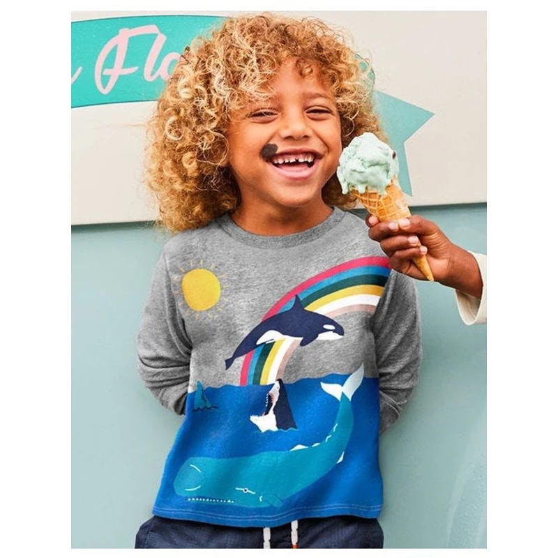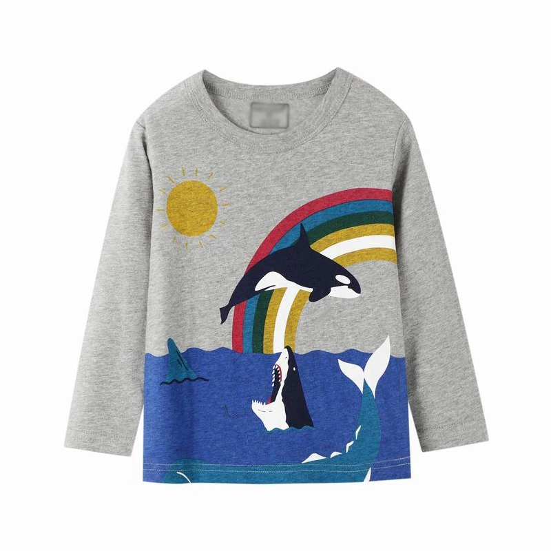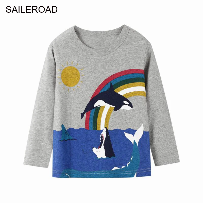 SAILEROAD/хлопковая рубашка для детей; Осенняя футболка с радугой для мальчиков; Топы с длинными рукавами; Футболки; Футболка; От 2 до 7 лет футболка с Китом