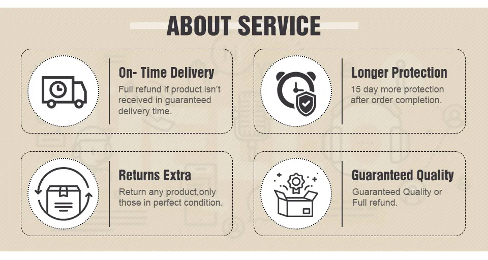 1. Мы очень ценим ваше раннее подтверждение, когда вы получили ваш товар.2. Мы поддерживаем высокие стандарты качества и стремимся к 100% удовлетворенности клиентов! Мы ценим 5-звездочный положительной обратной связи, это хорошо для нашего на долгосрочное сотрудничество.3. Пожалуйста, свяжитесь с нами немедленно, прежде чем дать нам нейтральный или отрицательный отзывы или открыть спор, мы постараемся сделать все возможное, чтобы решить проблему.