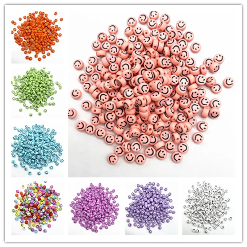 Новый 100 шт. 7x4 мм овальные Форма, рисунок со смайликом, акриловые бусины для самостоятельного изготовления ювелирных изделий браслет ручной работы аксессуары