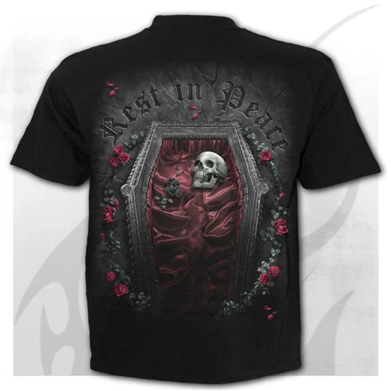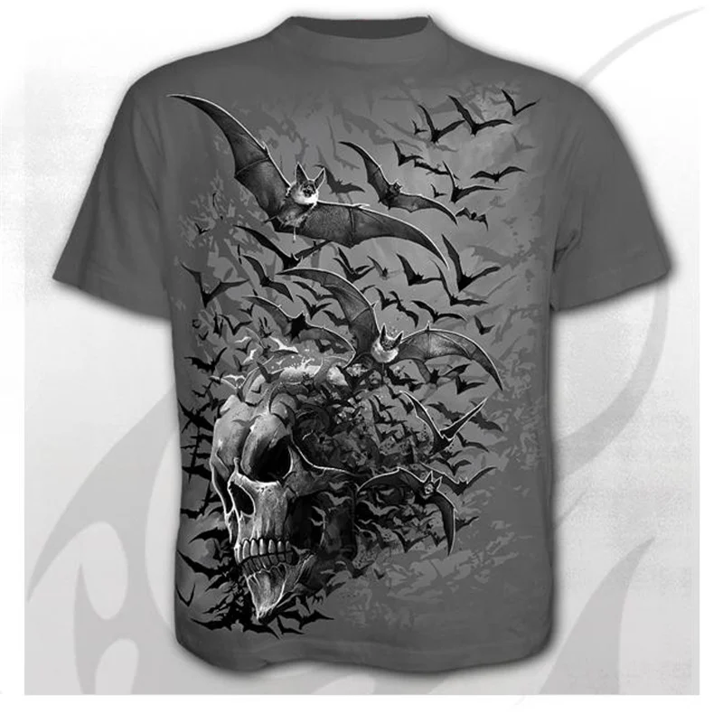 Жутким черепом Футболка мужская 3d в стиле панк-рок, рубашка в готи...