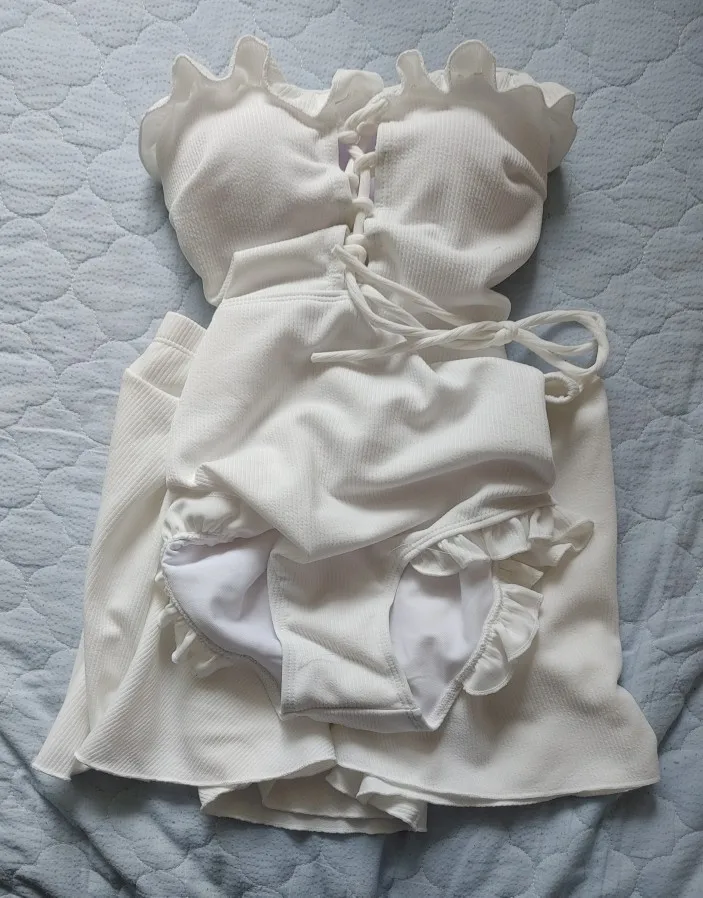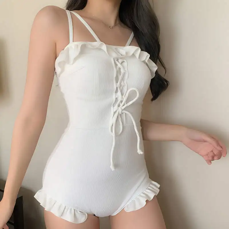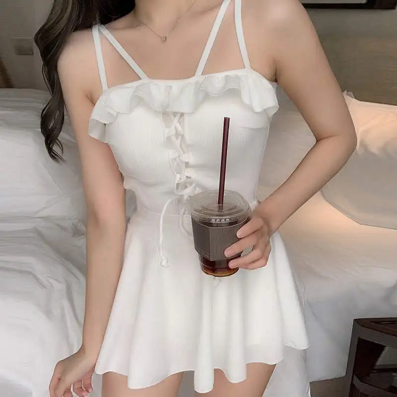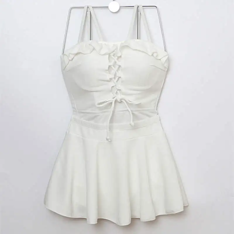 Новинка 2021, Популярная Корейская версия, белая сексуальная юбка на бретельках с оборками и перекрестными лямками с высокой талией, новый и элегантный купальник из двух частей