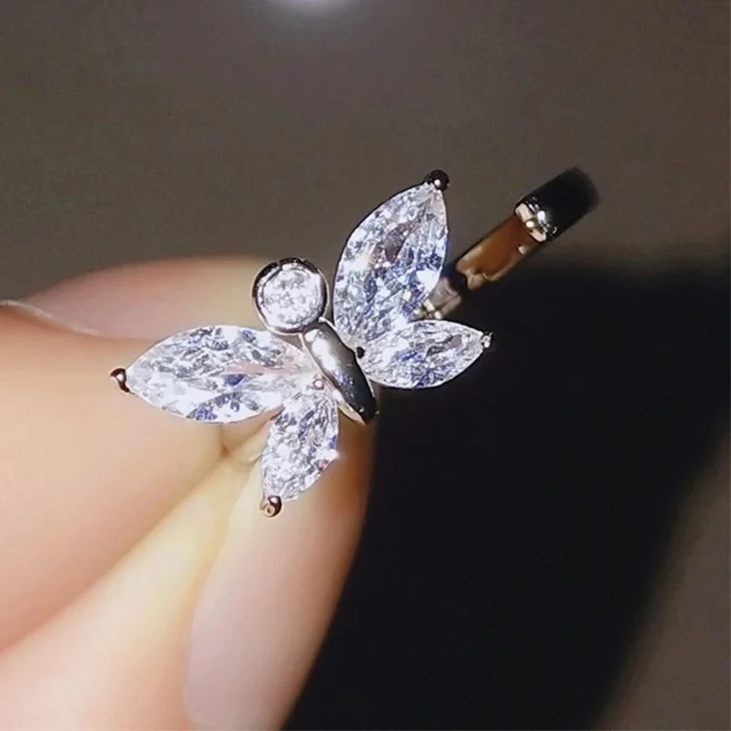 Новинка 2022, элегантные открытые кольца с кристаллами и жемчугом в виде бабочки для женщин, свадебные ювелирные изделия неправильной формы