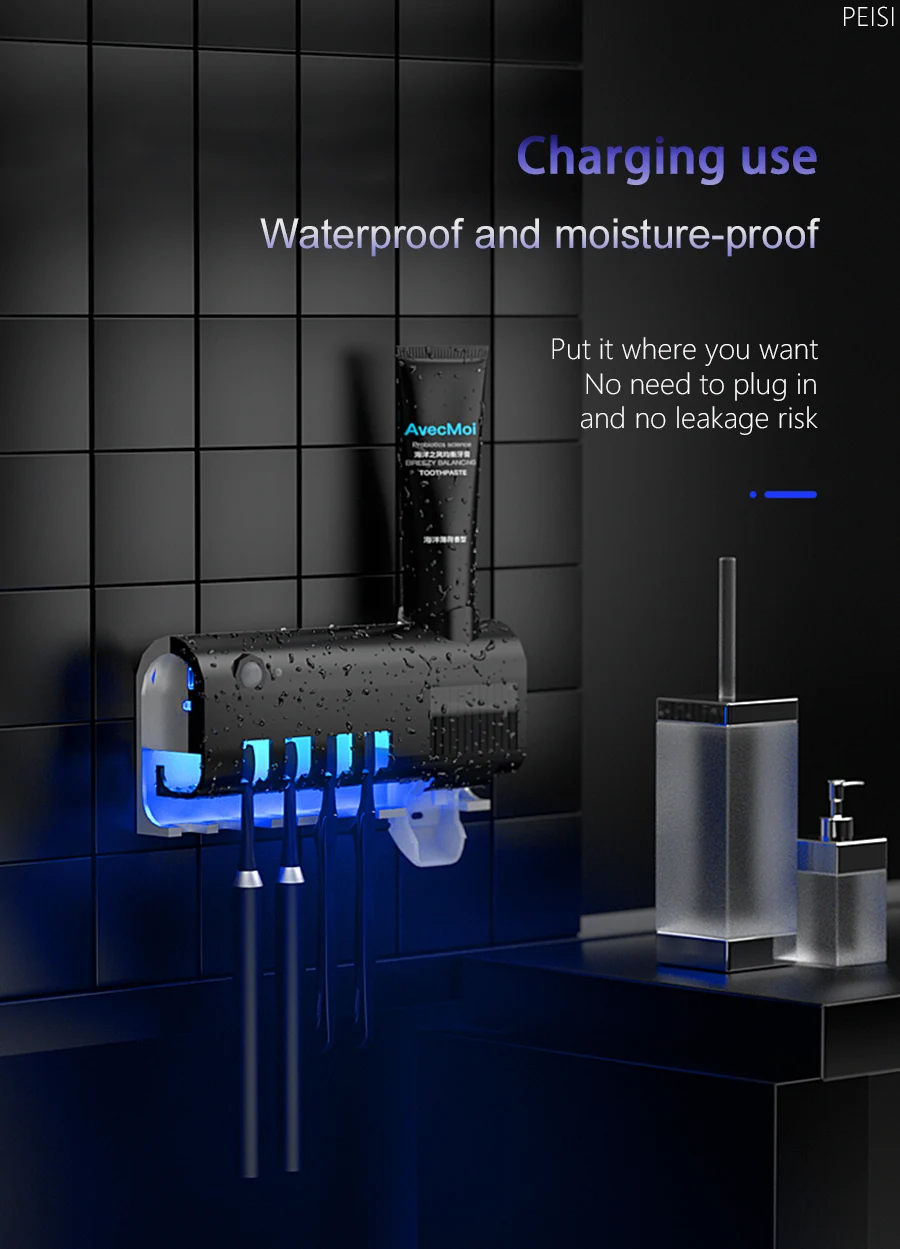 PEISI УФ держатель для зубной пасты и для зубной щетки диспенсер Солнечная энергия коробка для хранения зубных щеток для ванной комнаты Домашний набор аксессуаров для ванной комнаты