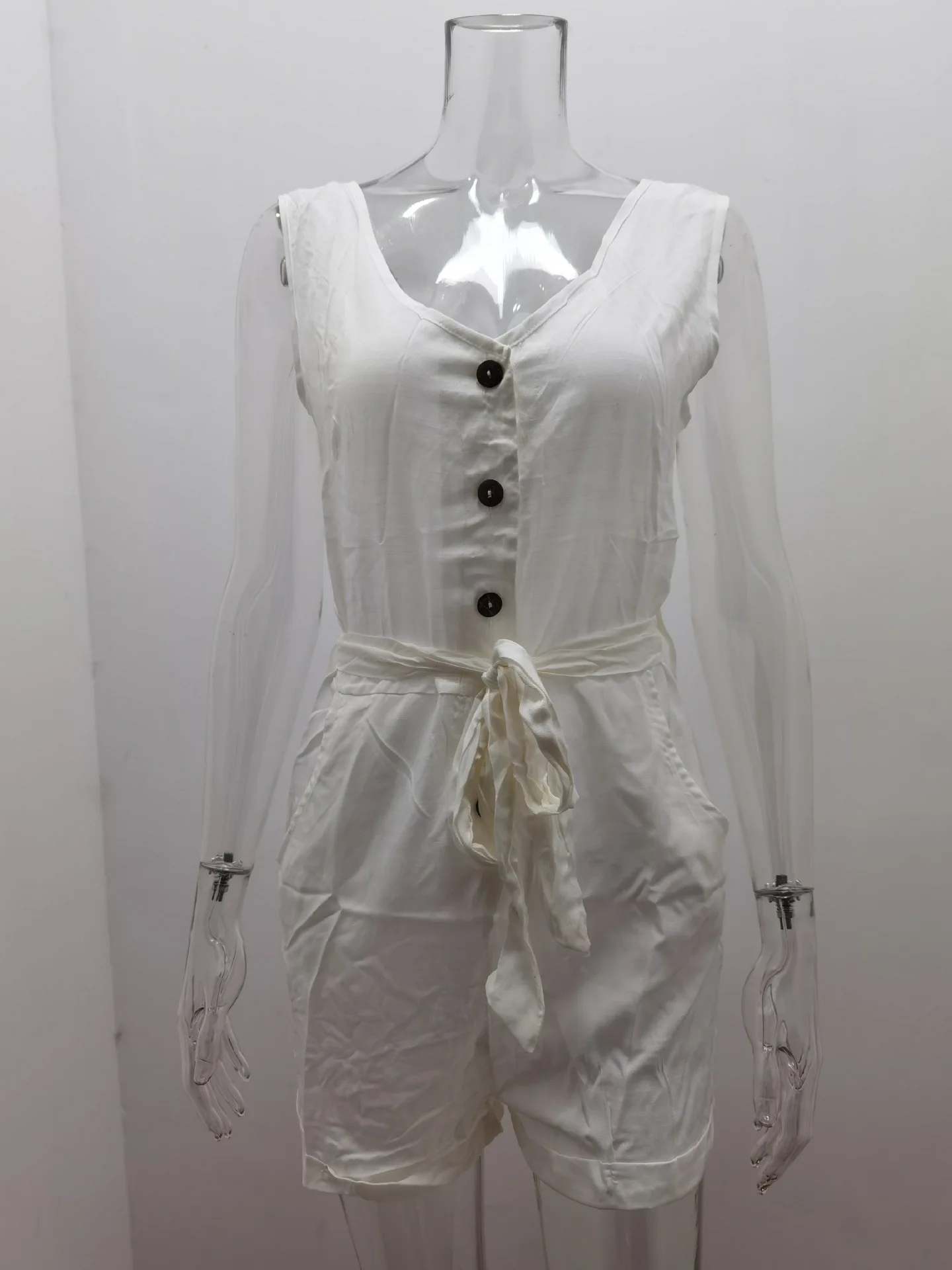 Женский комбинезон без рукавов, однотонный Повседневный короткий комбинезон с открытыми плечами и поясом, лето 2021