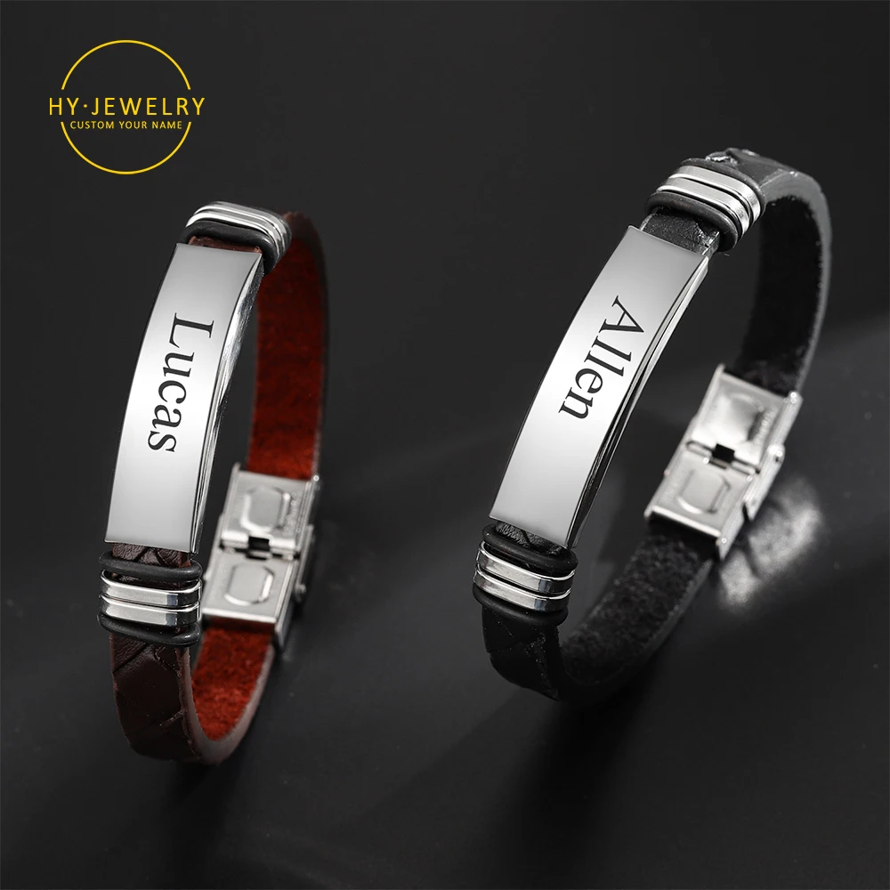 Браслеты на заказ с именем для мужчин, плетеные украшения из натуральной кожи с именем под заказ, с золотой гравировкой имени, ювелирные изделия в подарок бойфренду