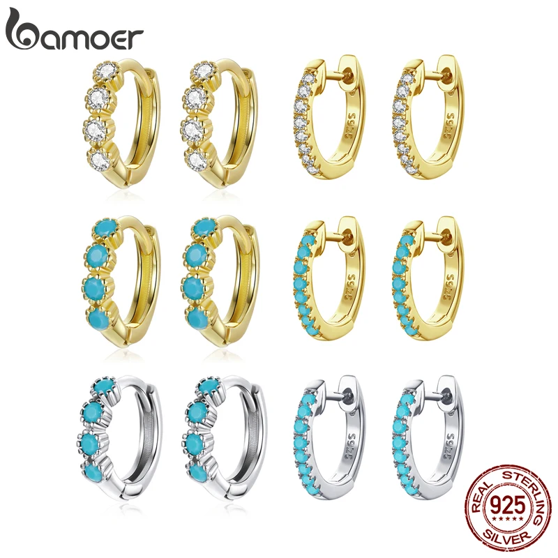 Bamoer стильные серьги с застежкой из стерлингового серебра 925 пробы золотые цветные циркониевые серьги для женщин подарок на помолвку SCE1126