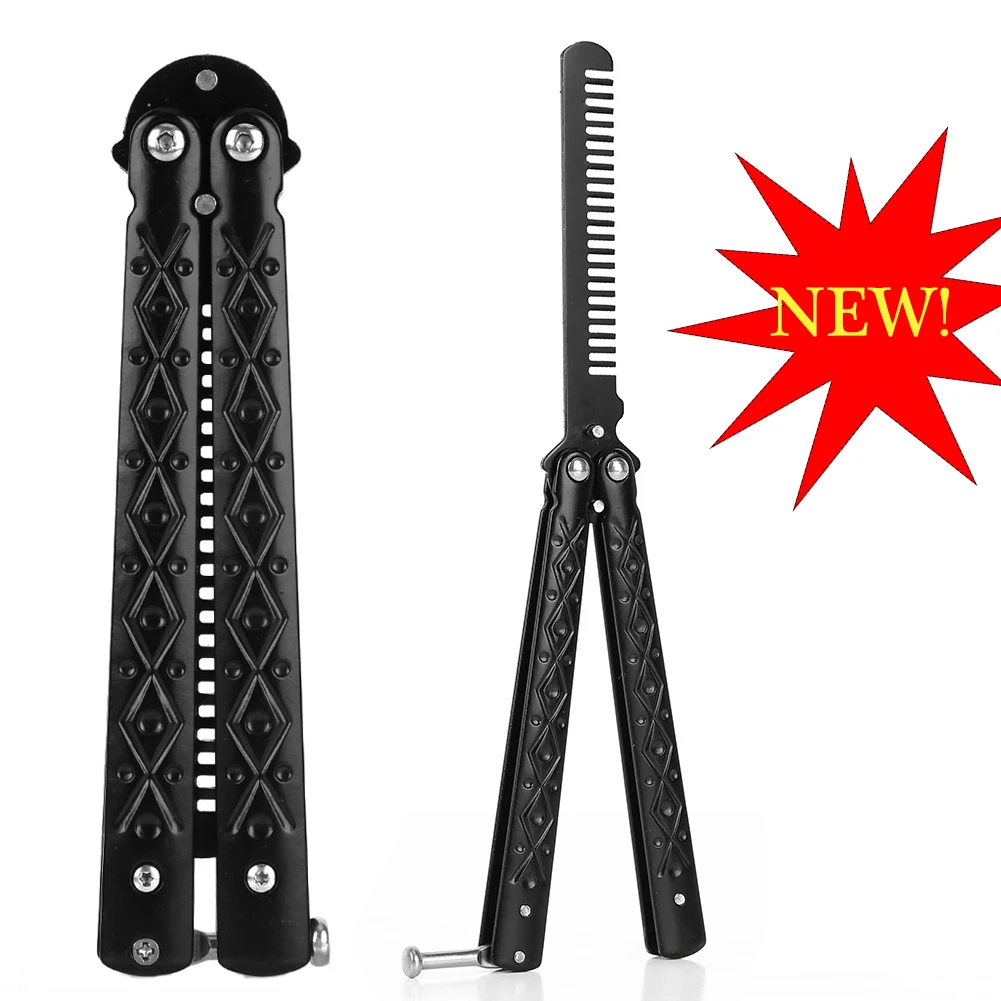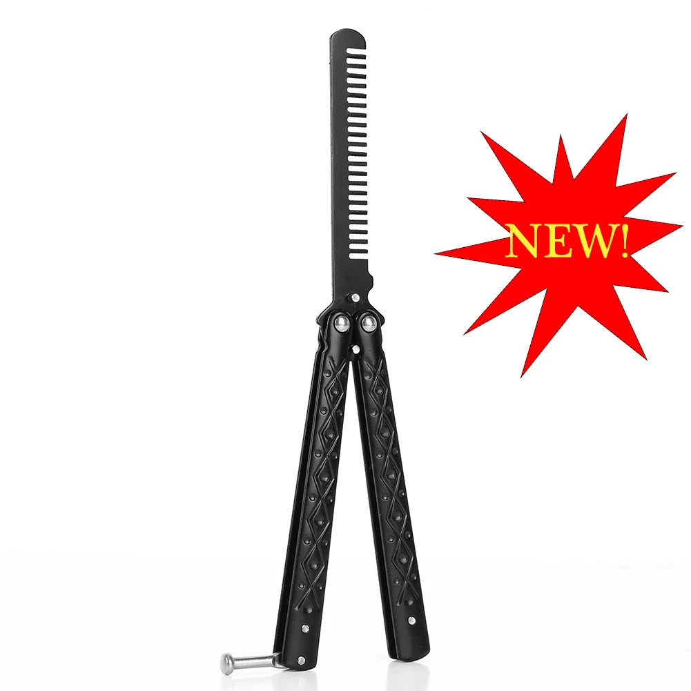 Новинка; 1 предмет складной бабочка Ножи гребень Нержавеющаясталь тренировочный гребень с бабочкой Укладка волос путешествия аксессуар
