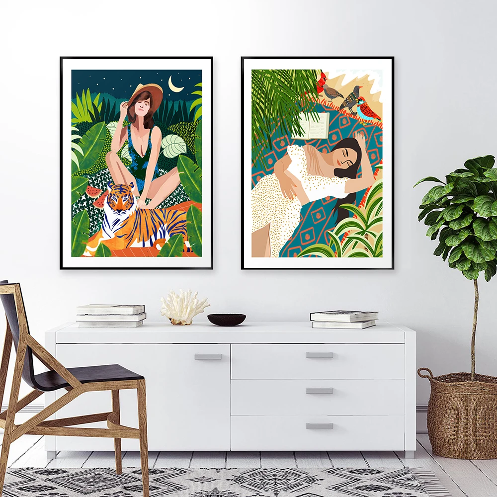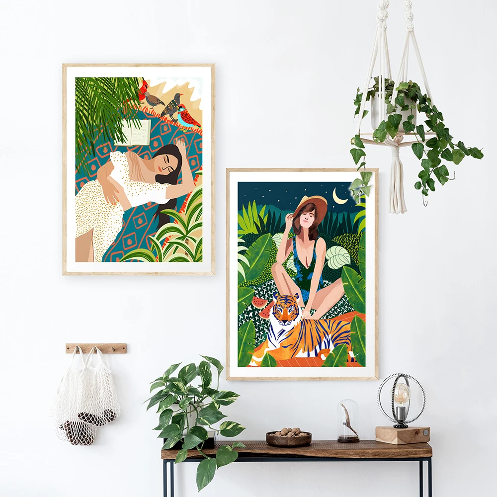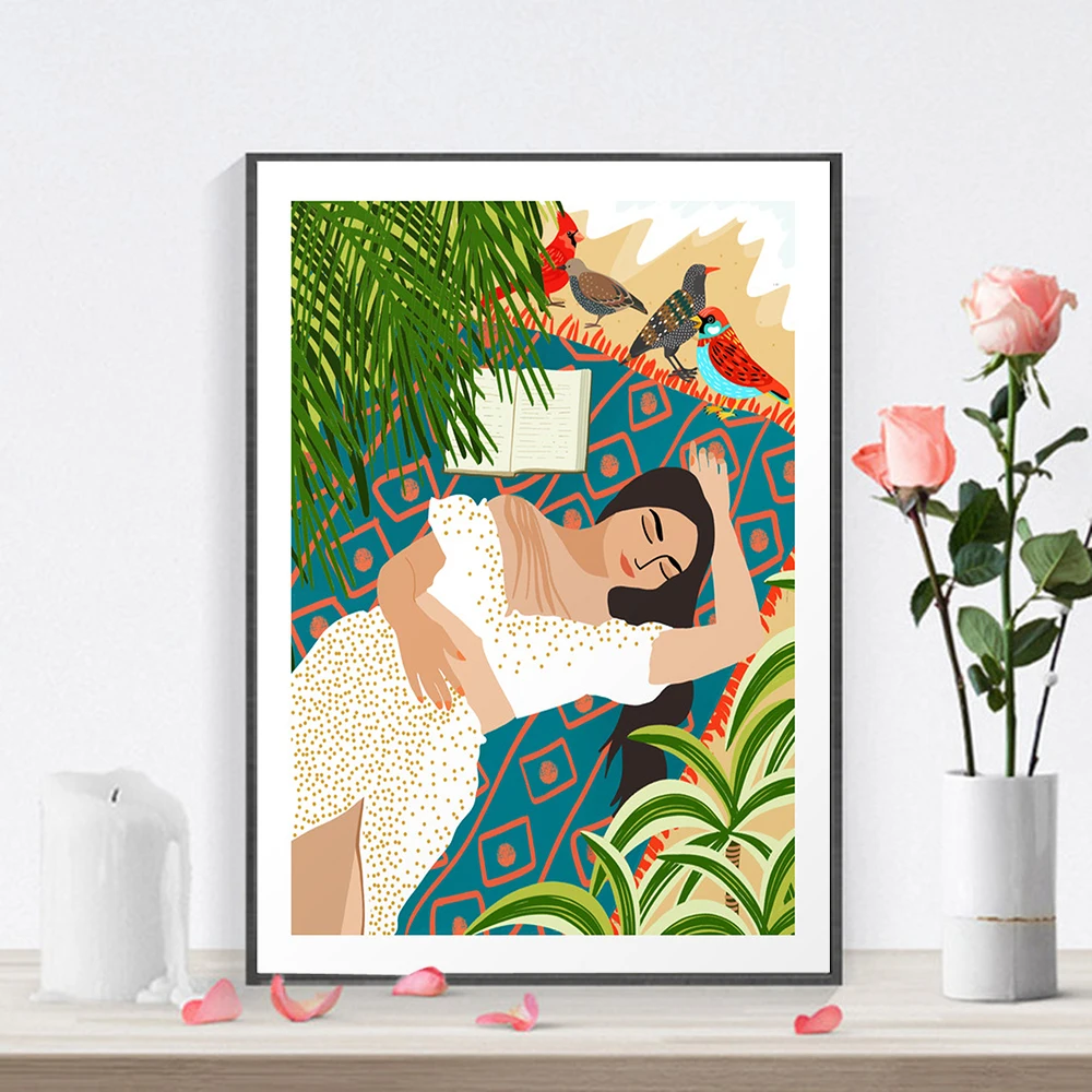 Настенный постер в стиле бохо, Картина на холсте с изображением дев...
