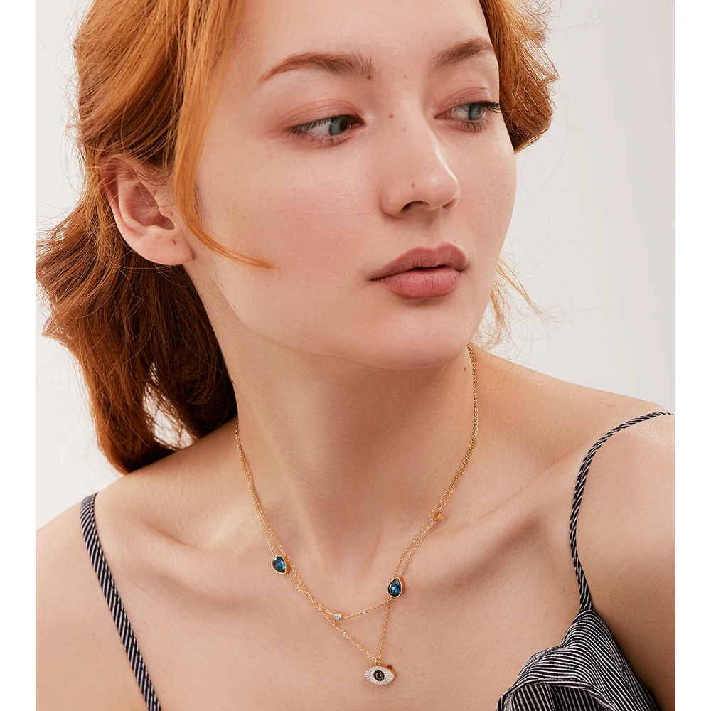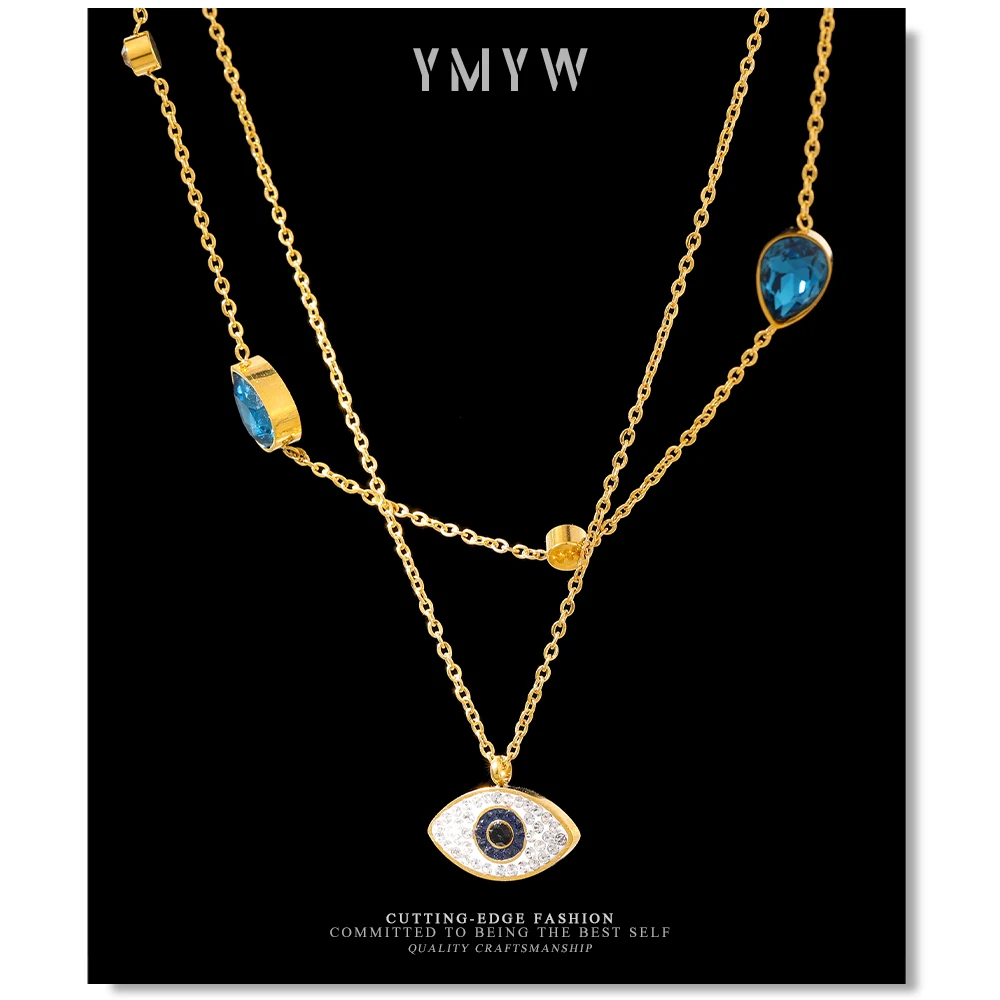 YMYW изысканное блестящее ожерелье с кубическим цирконием для глаз из нержавеющей стали, многослойный воротник, украшение для волос 2021, свадебный подарок