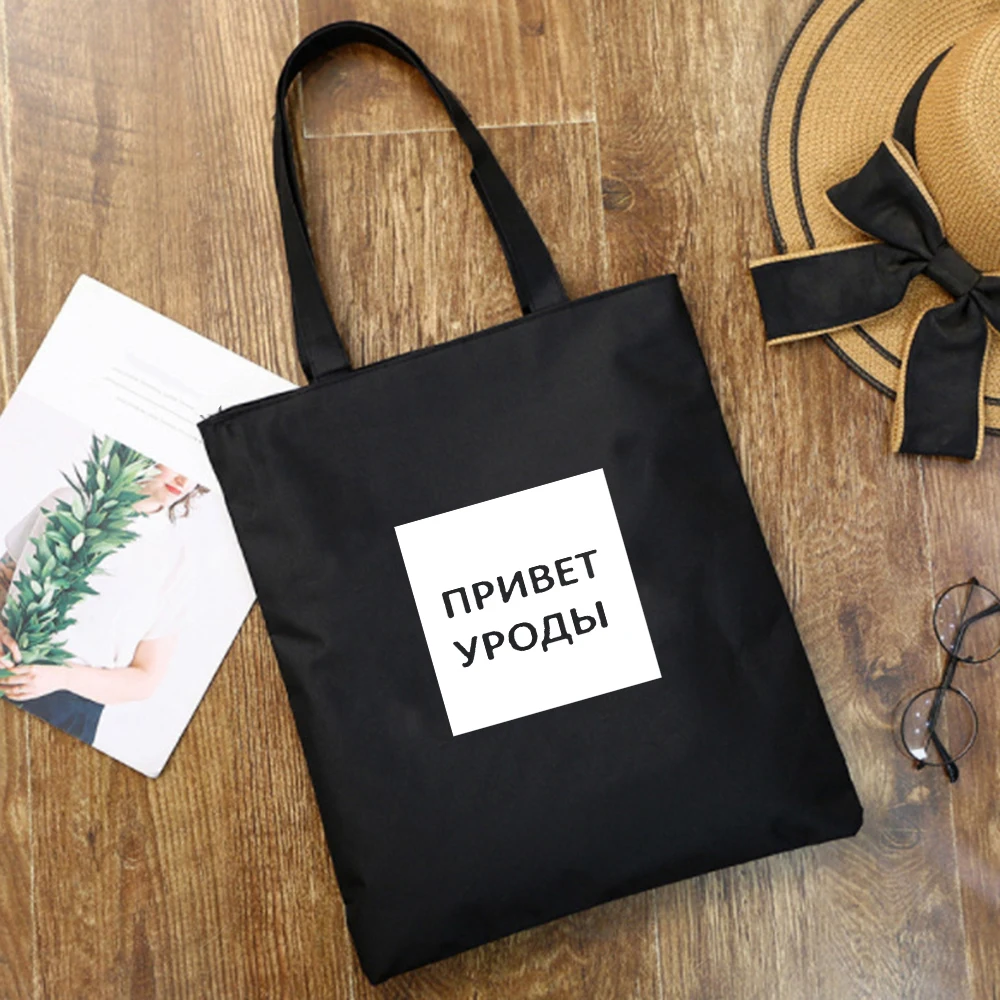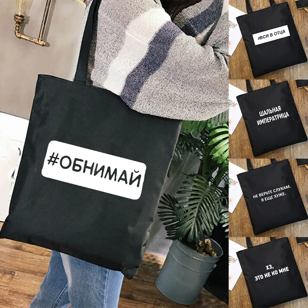 Женская многоразовая сумка для покупок с русскими надписями, Модная студенческая сумка-тоут для книг, складная дорожная сумка на плечо