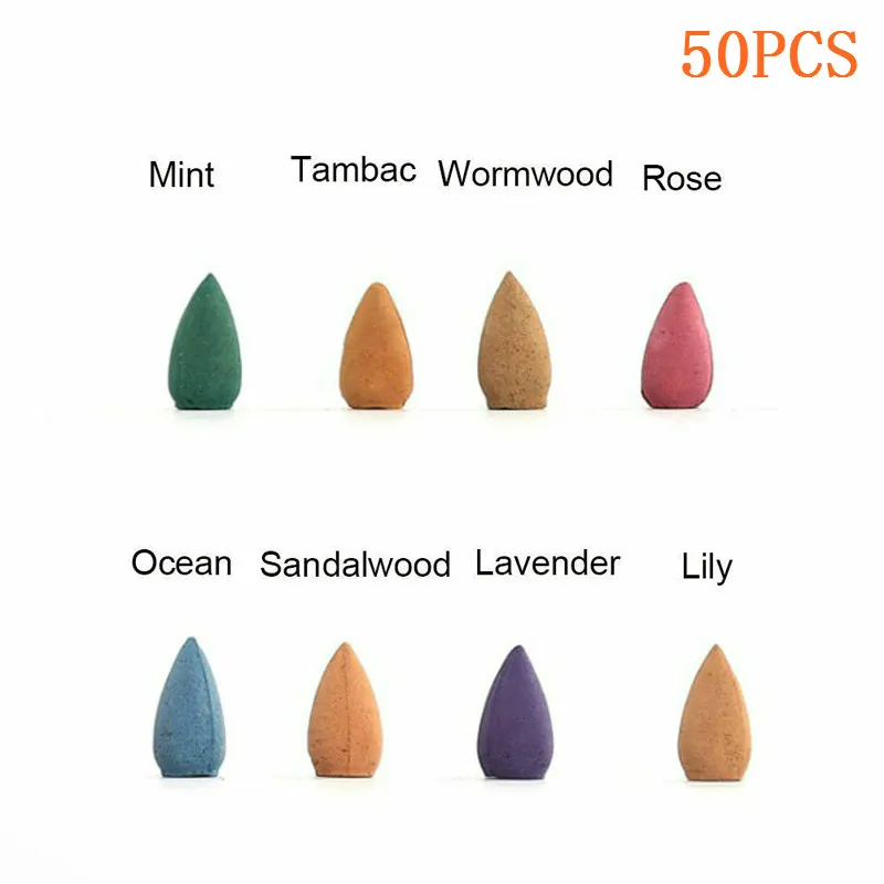 Конусы для благовоний, 50 шт., для заднего потока, искусственное сандаловое дерево, роза, лаванда, цветок, благовония
