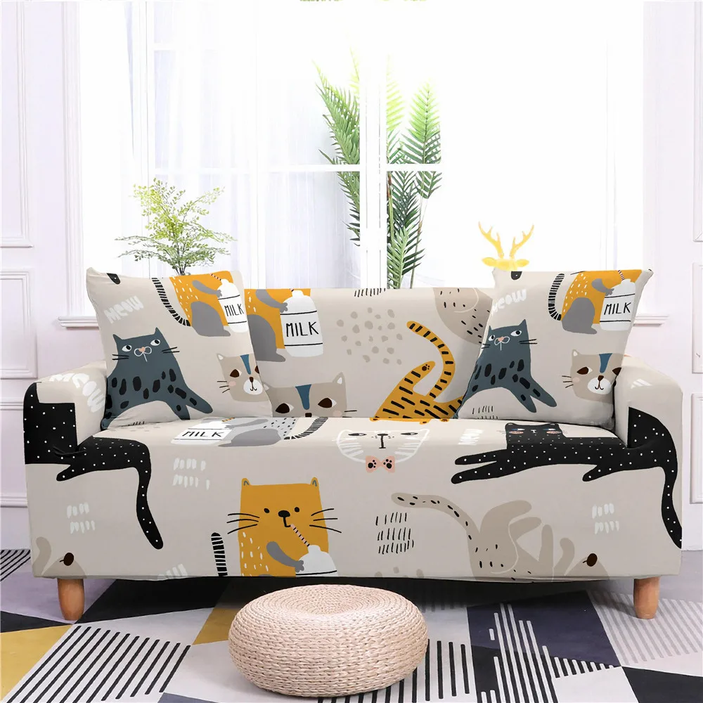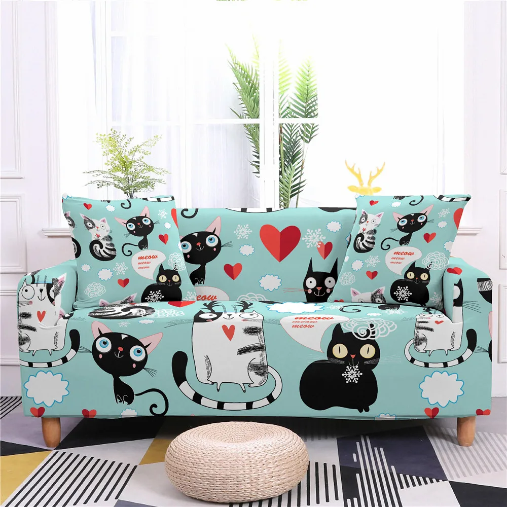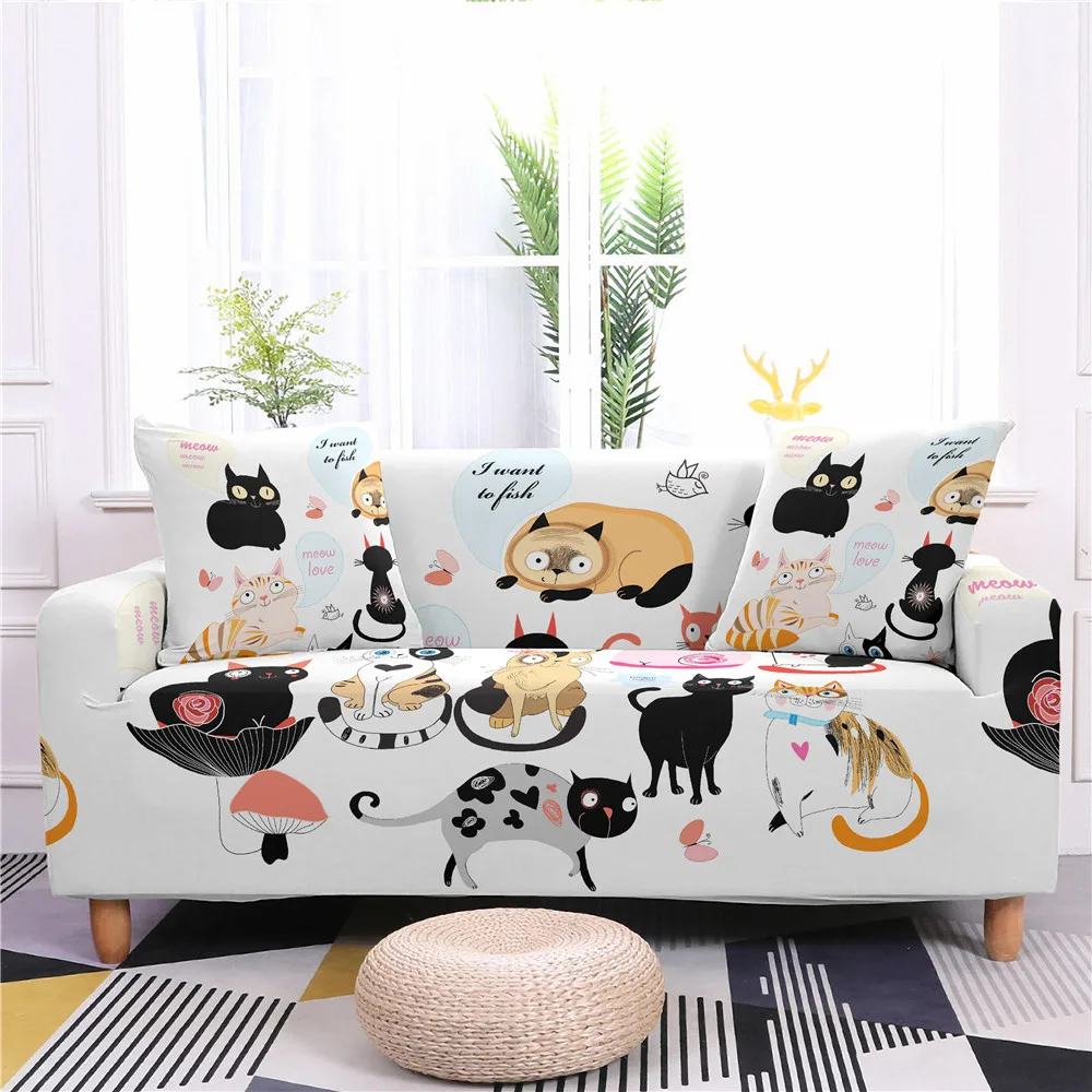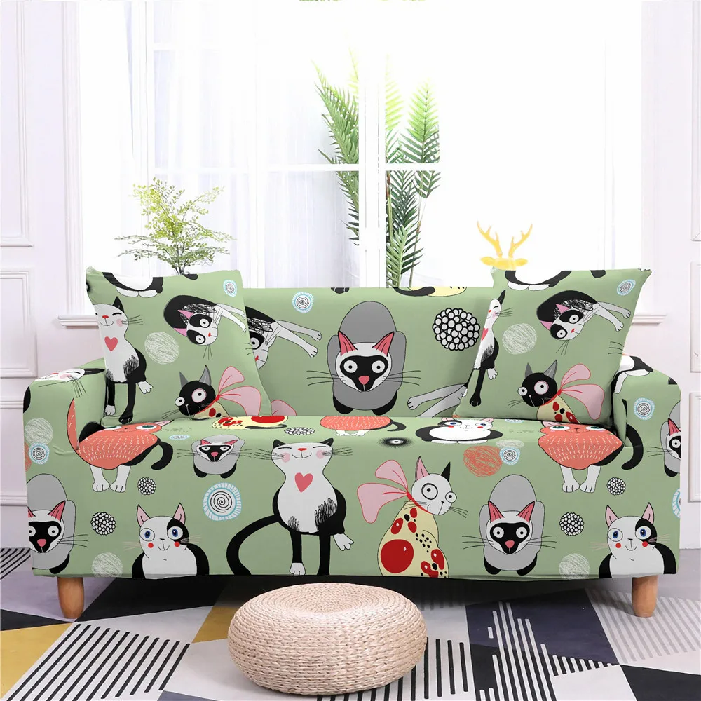 Милые Мультяшные чехлы для диванов с котом для гостиной, домашнего дивана, растягивающийся чехол для больших диванов, защитный чехол для диванов, чехол для подушки