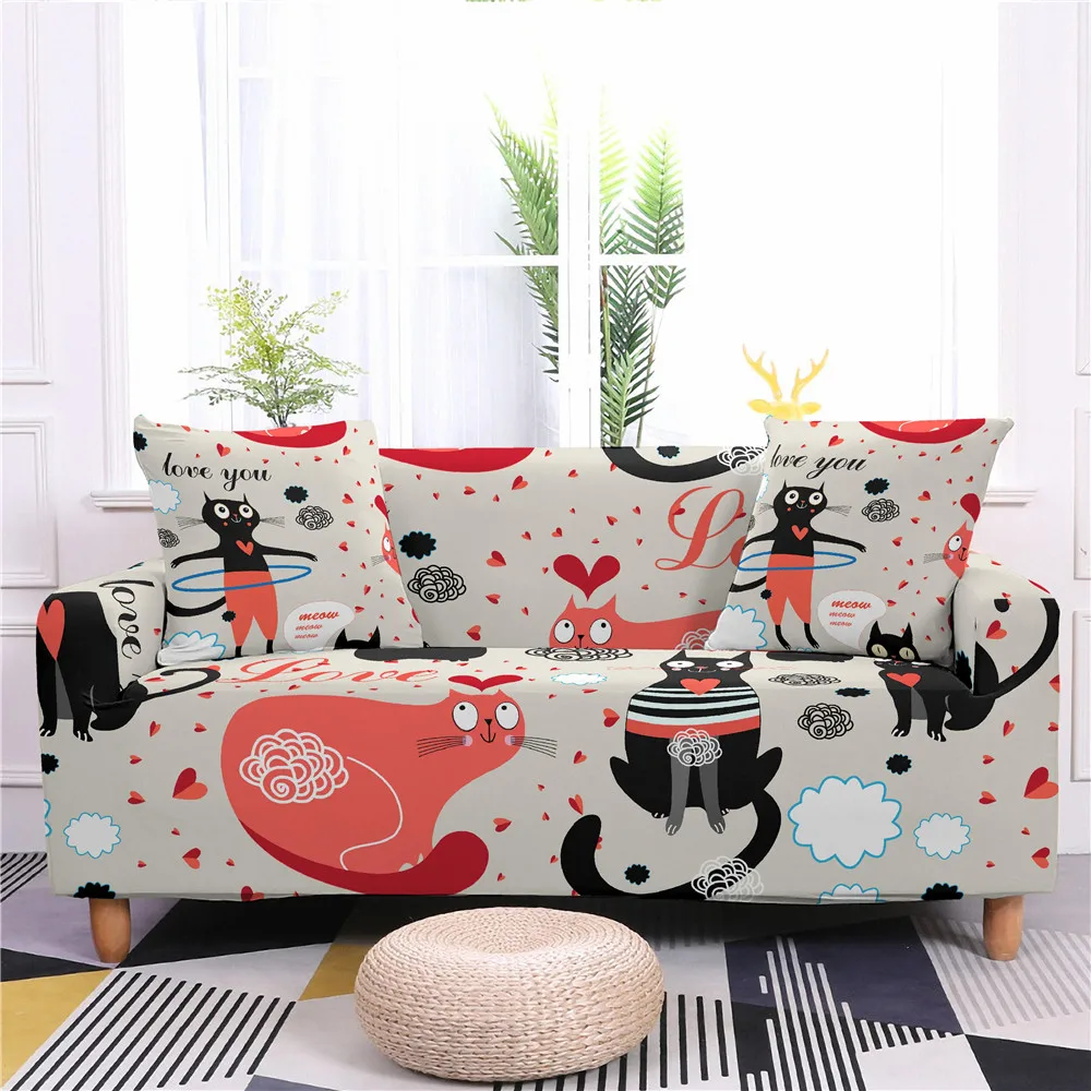 Чехлы на диван с изображением кошки на День святого Валентина для г...