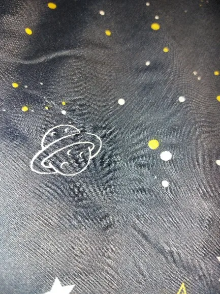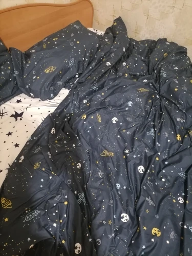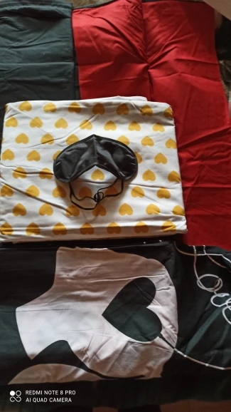 Комплект постельного белья хорошего качества, нитки нигде не торчат, запаха нет Единственный минус-рисунок на пододеяльнике расположен не верно, на фото видно. Продавцу большое спасибо за приятный подарочек в виде ночной маски для сна.