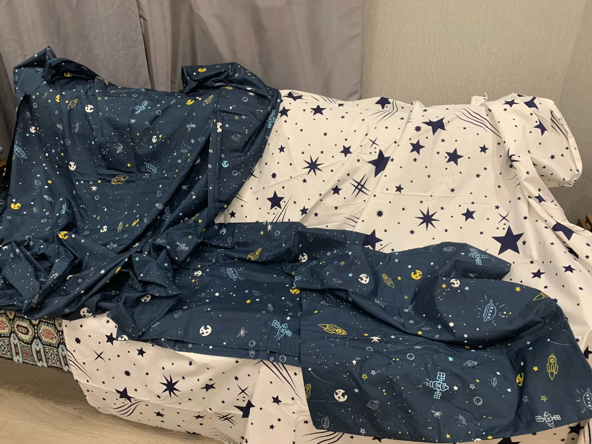 Очень быстро приехал курьером, закажу ещё 2 комплекта. Качество нормальное, ткань плотная, а за эти деньги вообще огонь.