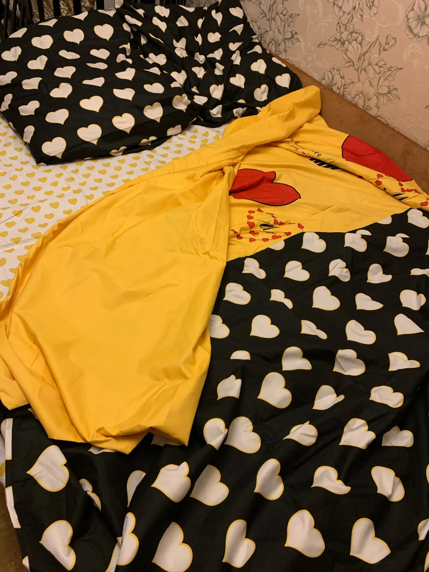 белая простыня в желтое сердечко совсем не сочетается с комплектом. но бельё хорошее