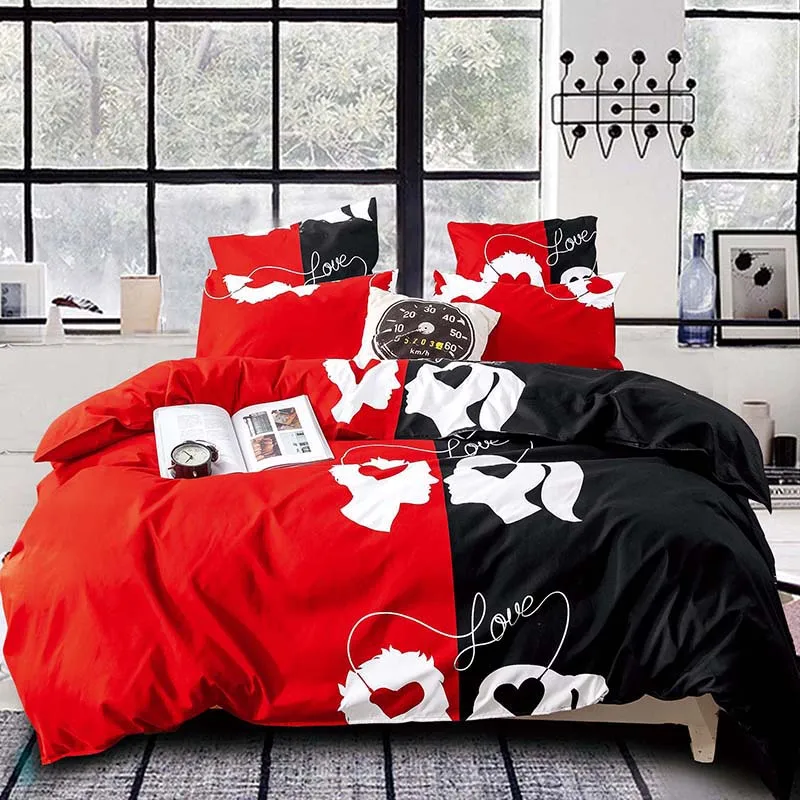 пришло быстро,продавцу спасибо,все как на картинке, только простынь розовая не очень к черному с красным